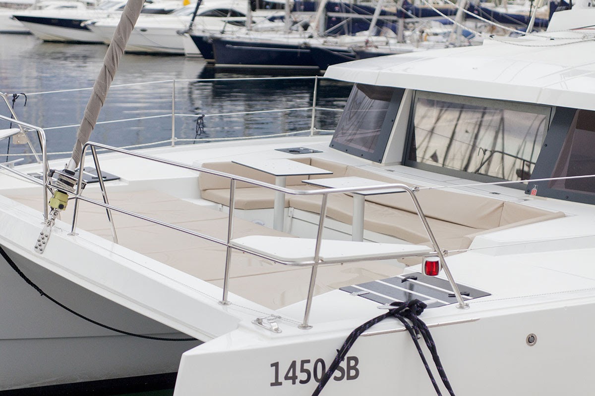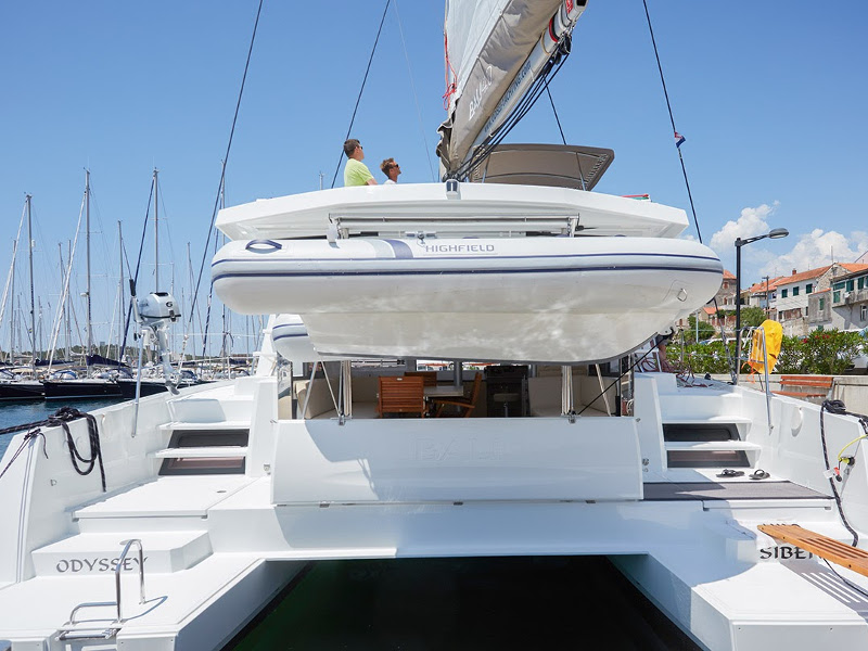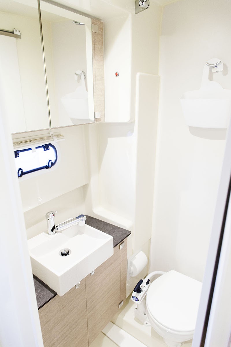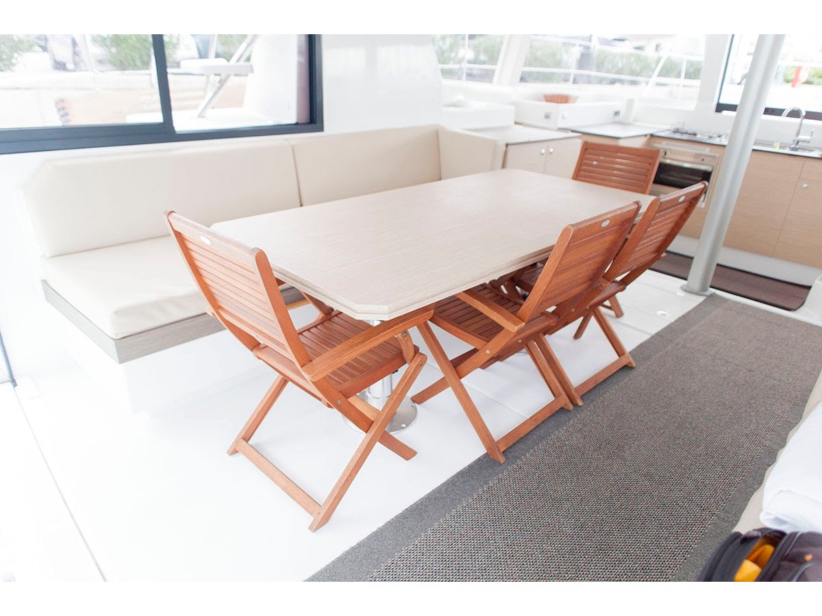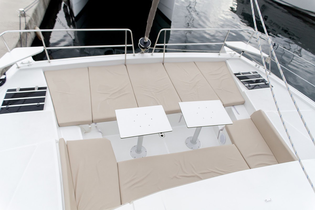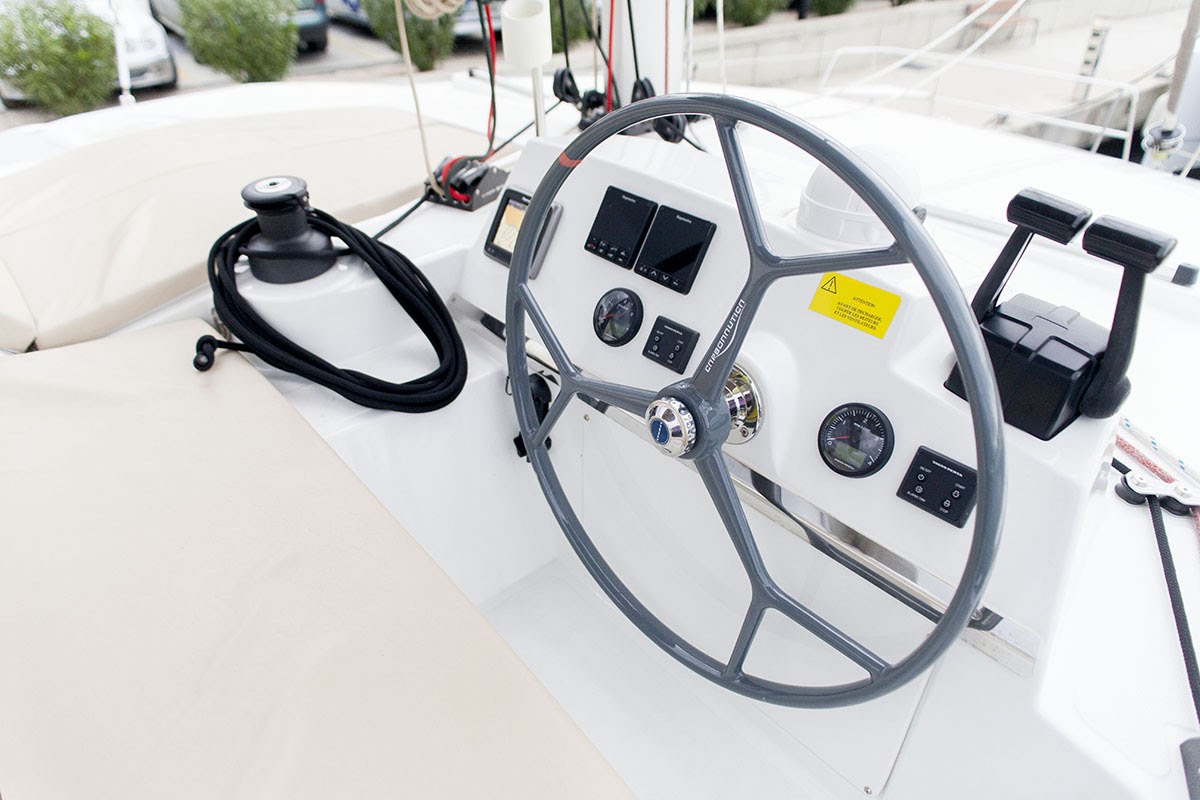 | Outside | 220 V Landstromkabel mit Ladegerät, 220 V-Landanschluss, Anker mit Kette, Badeleiter, Badeplattform, Biminitop, Cockpitdusche, Cockpitlautsprecher, Cockpitpolster, Cockpittisch, Deckpolster, elektr. Ankerwinsch, Solaranlage, Windex, Winschen |