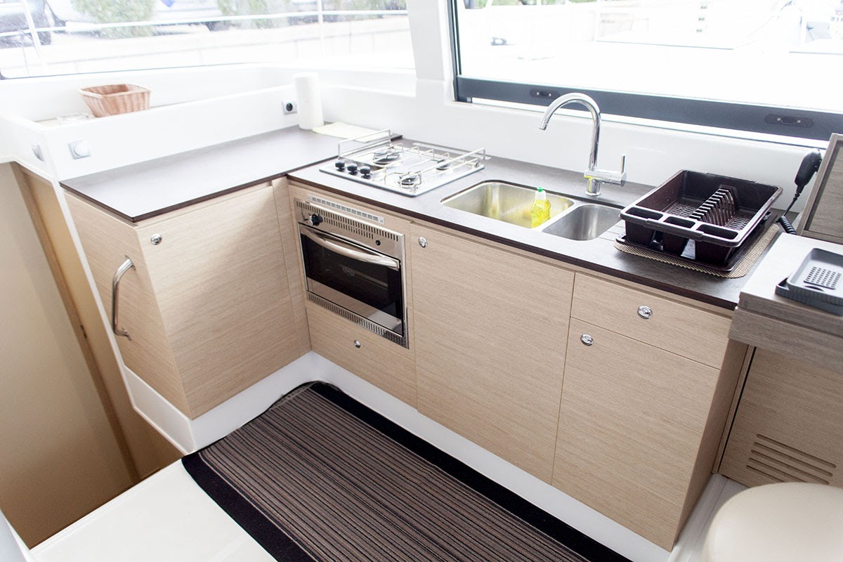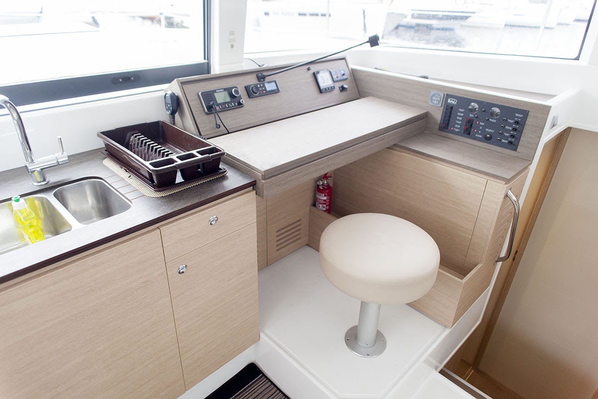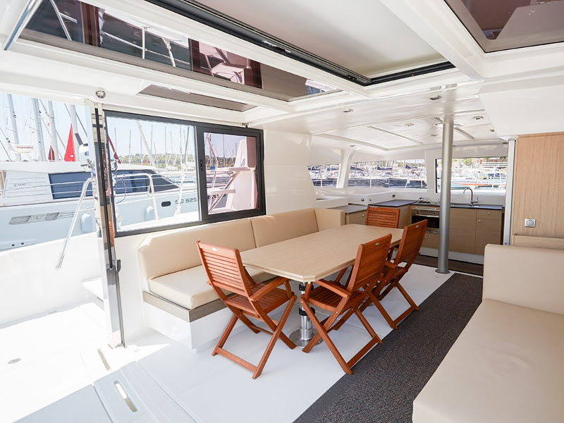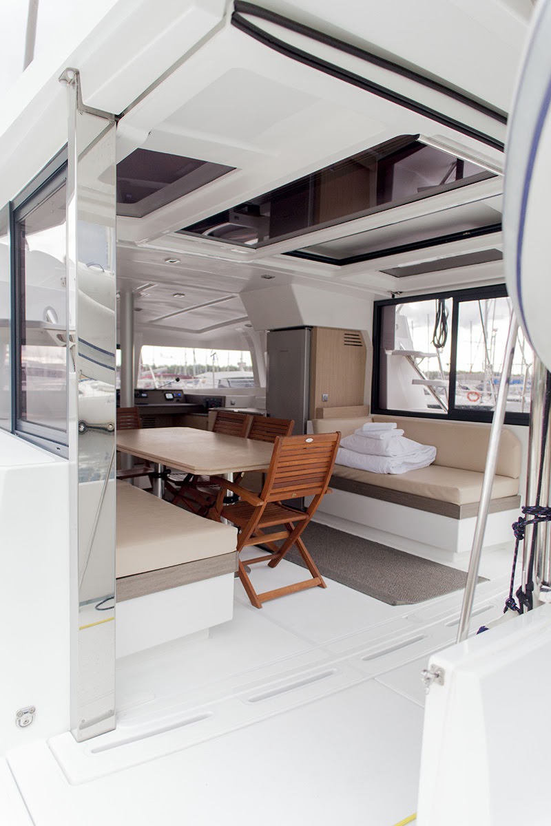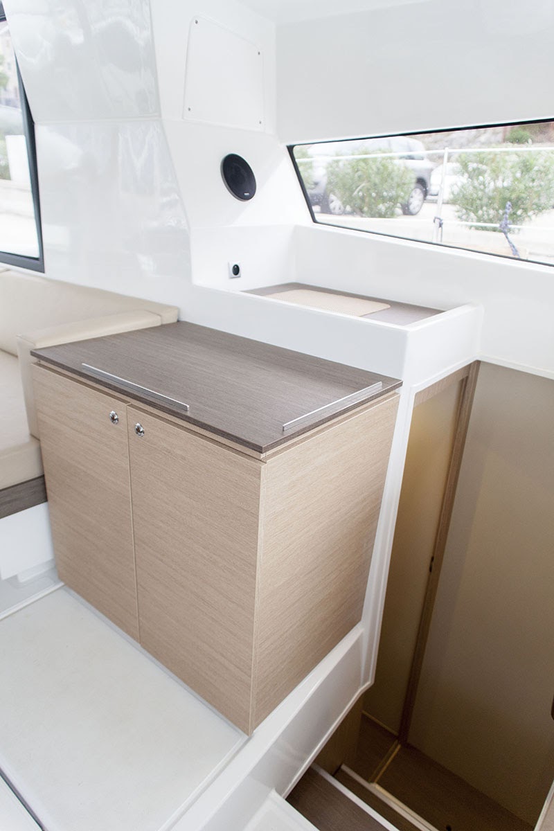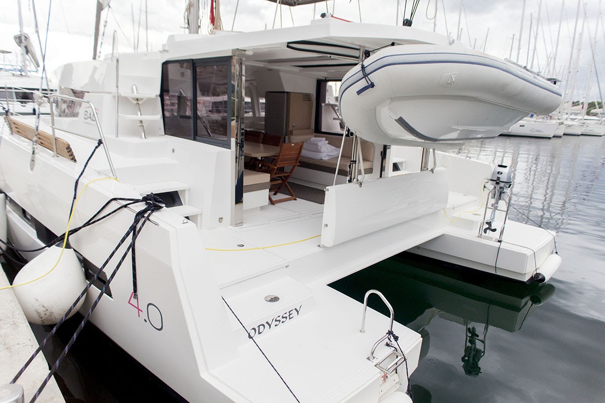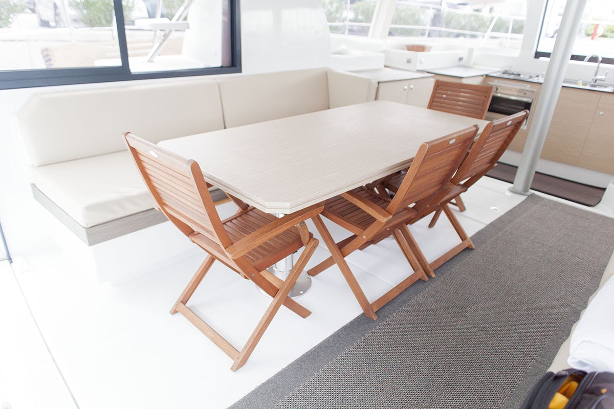 | Outside | 220 V Landstromkabel mit Ladegerät, 220 V-Landanschluss, Anker mit Kette, Badeleiter, Badeplattform, Biminitop, Cockpitdusche, Cockpitlautsprecher, Cockpitpolster, Cockpittisch, Deckpolster, elektr. Ankerwinsch, Solaranlage, Windex, Winschen |