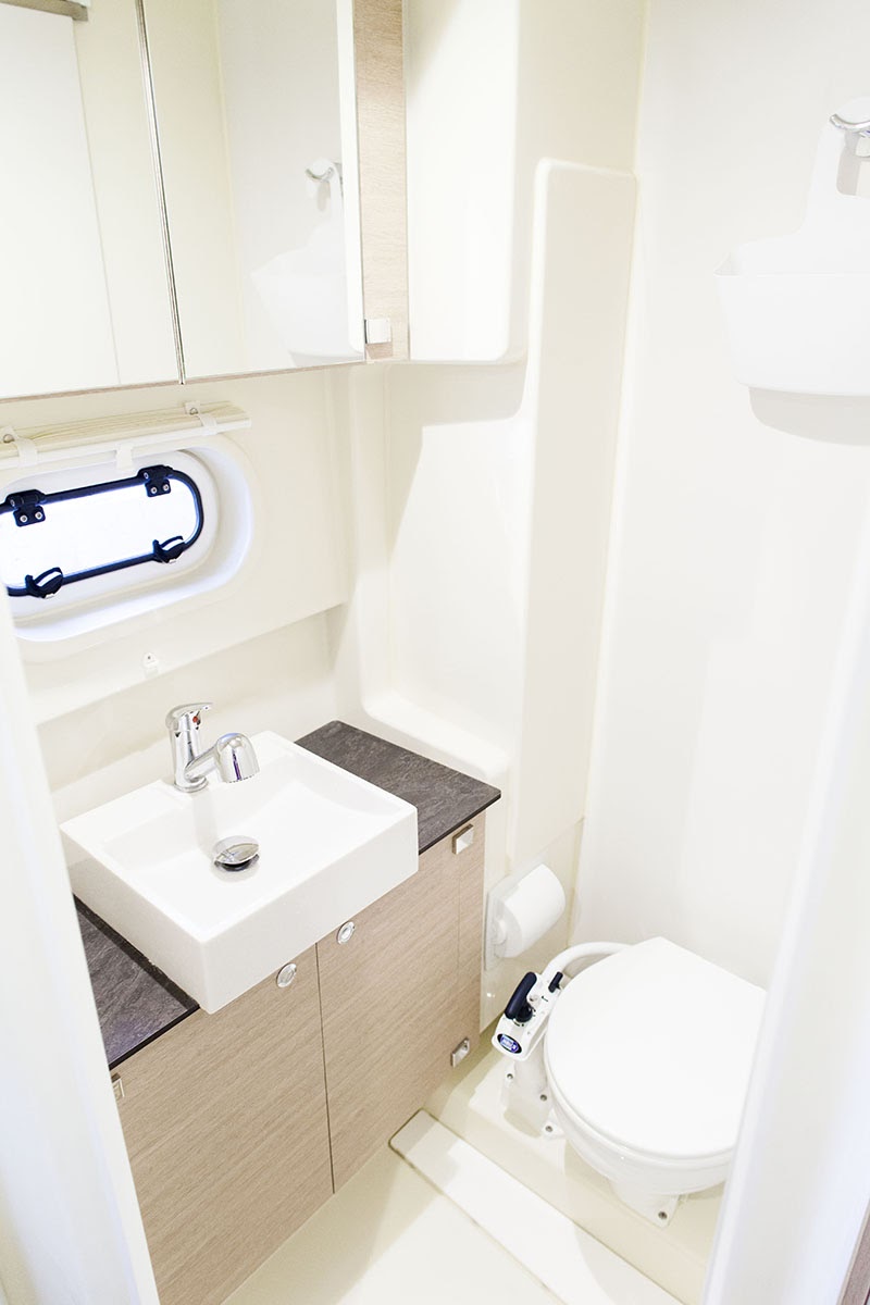 | Inside | Gasherd mit Backofen, Gefrierschrank, Inverter 12V/220V, Kühlschrank, Pantryausstattung, Radio mit CD, Salontisch absenkbar, Spülbecken, Warmwasser, WC (elektr.) |