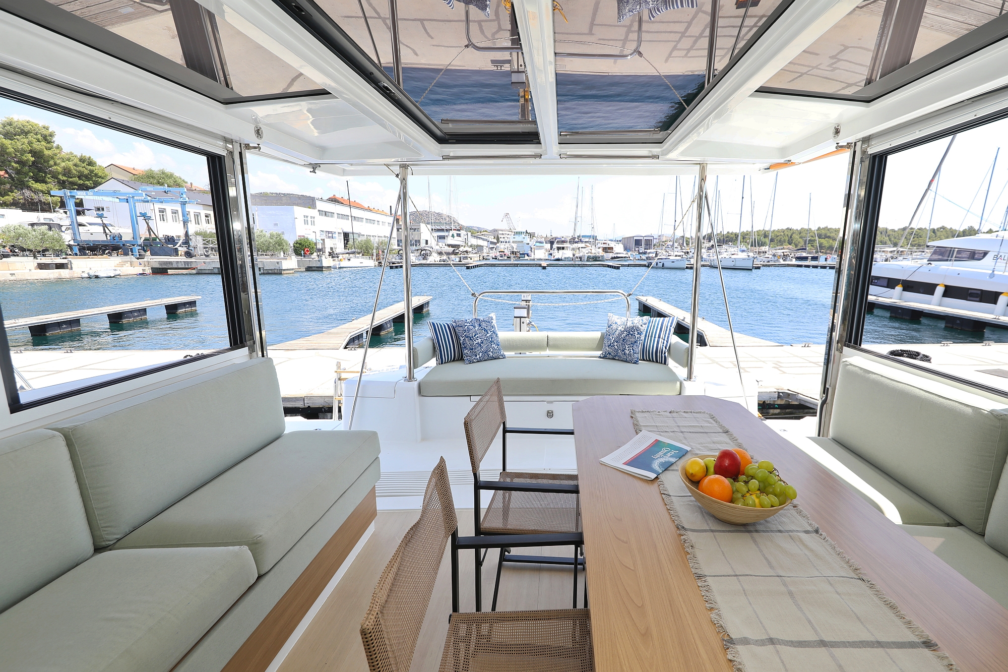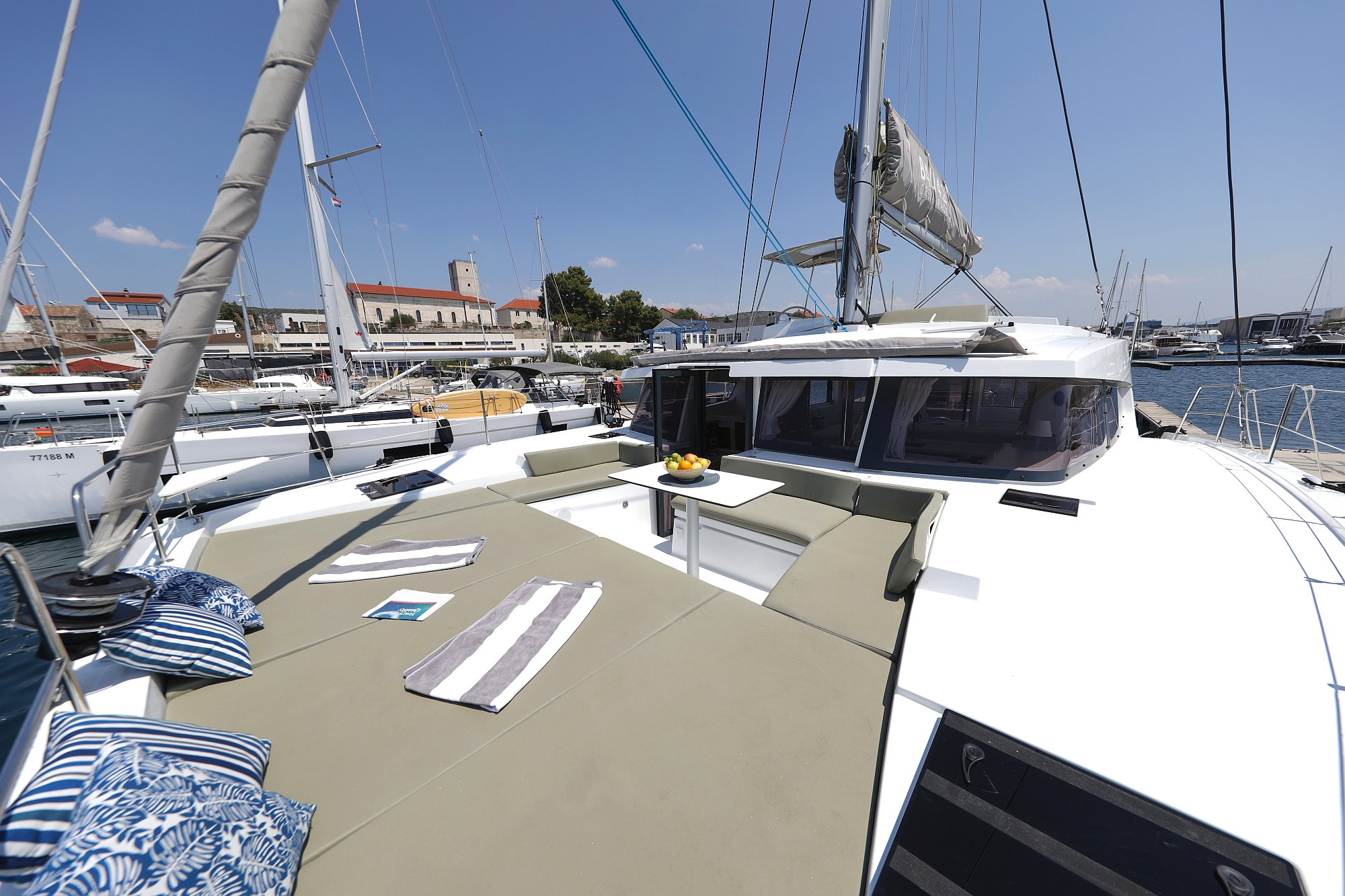 | Navigation | GPS mit Kartenplotter im Cockpit, Hafenhandbücher, Seekarten, Sumlog, Windmesser |