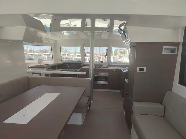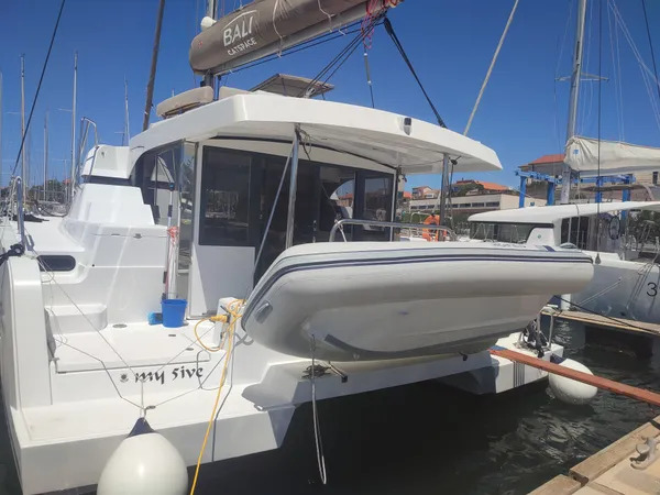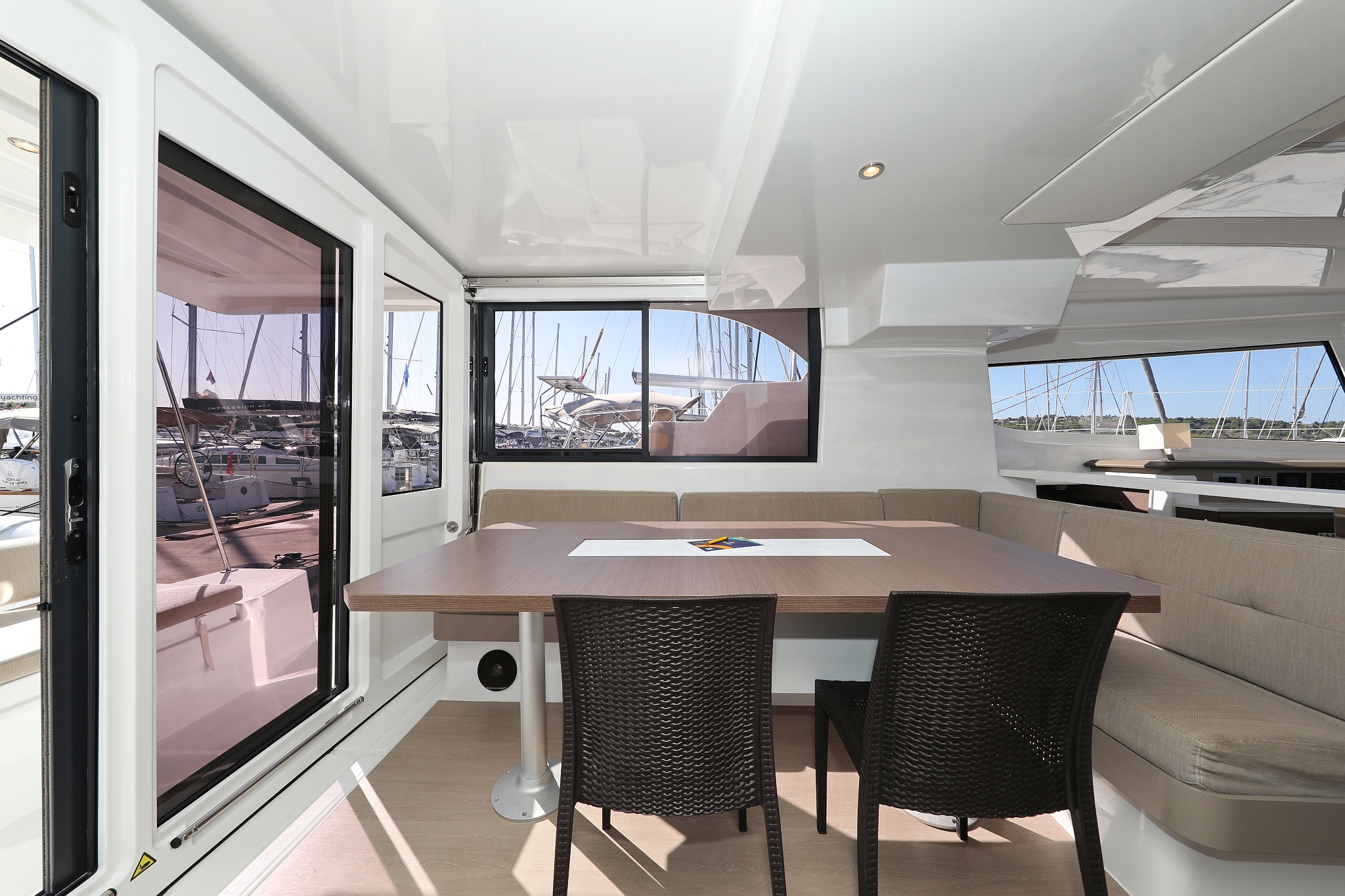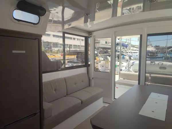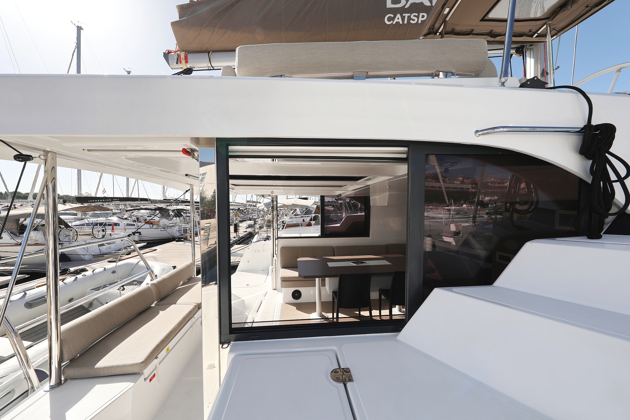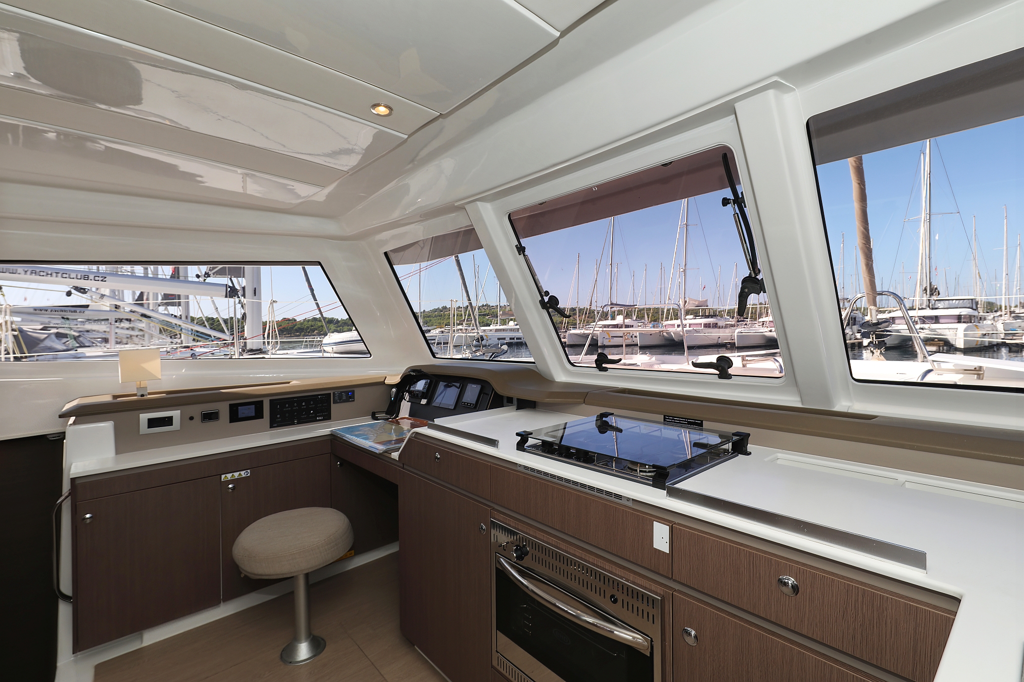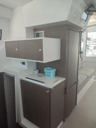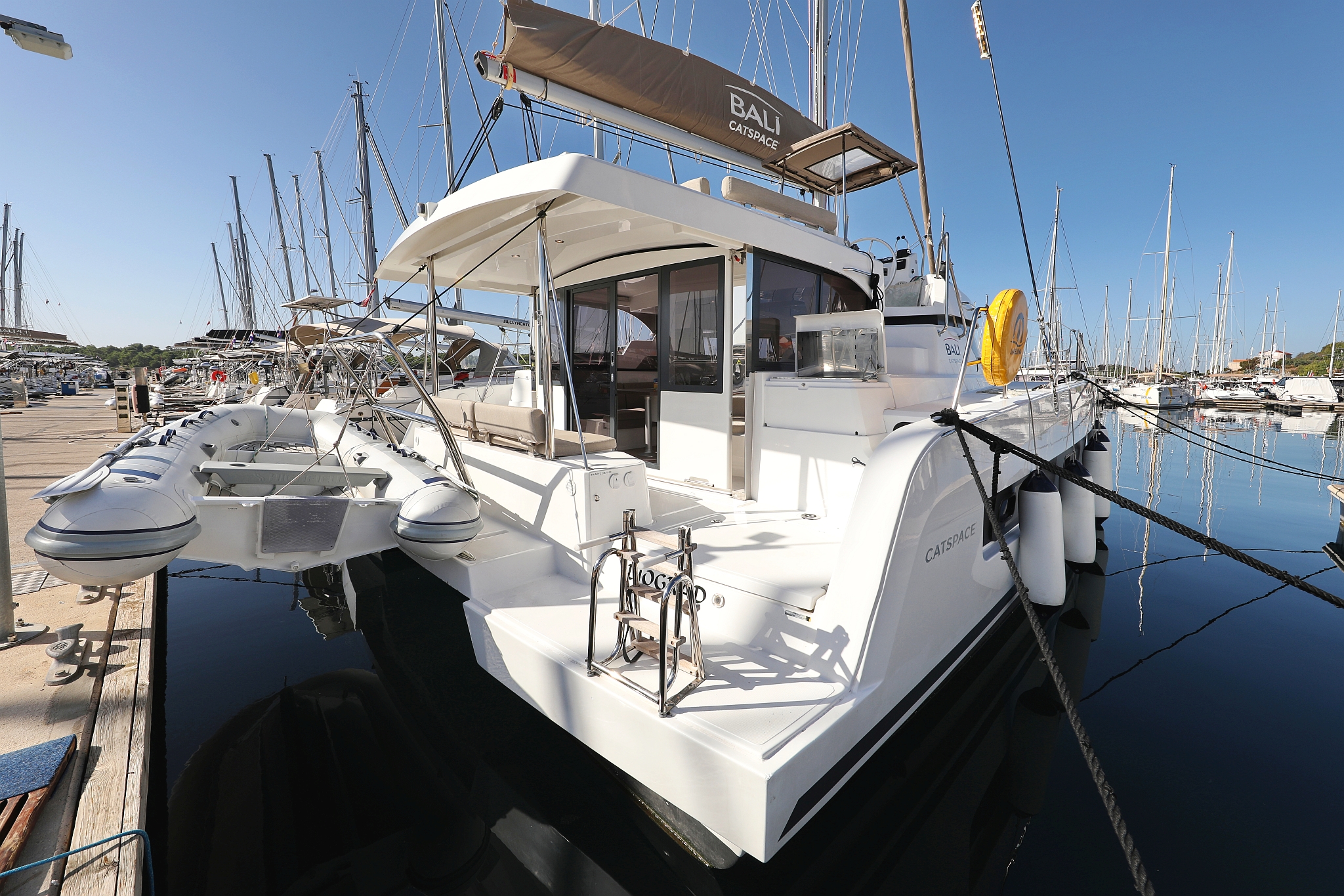 | Outside | 12 V-Anschluss, 220 V-Landanschluss, Anker mit Kette, Bootshaken, Cockpitdusche, Cockpitlautsprecher, Cockpitpolster, Cockpittisch, Deckpolster, elektr. Ankerwinsch, elektr. Winsch, Fender, Festmacherleinen, Gangway, Grill, Hardtop, Sonnendeck, Wasserschlauch, Winschen |