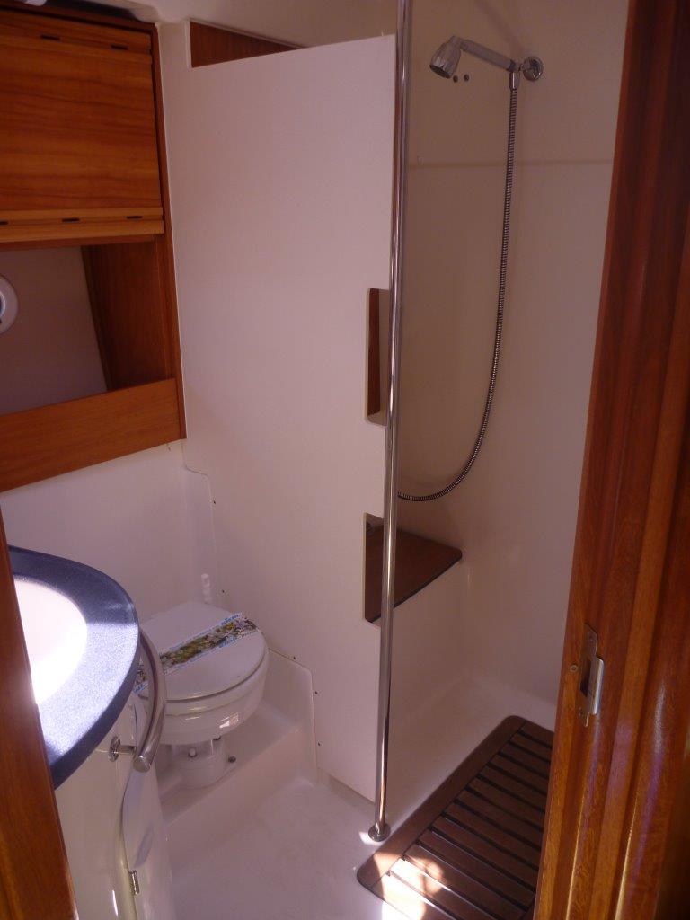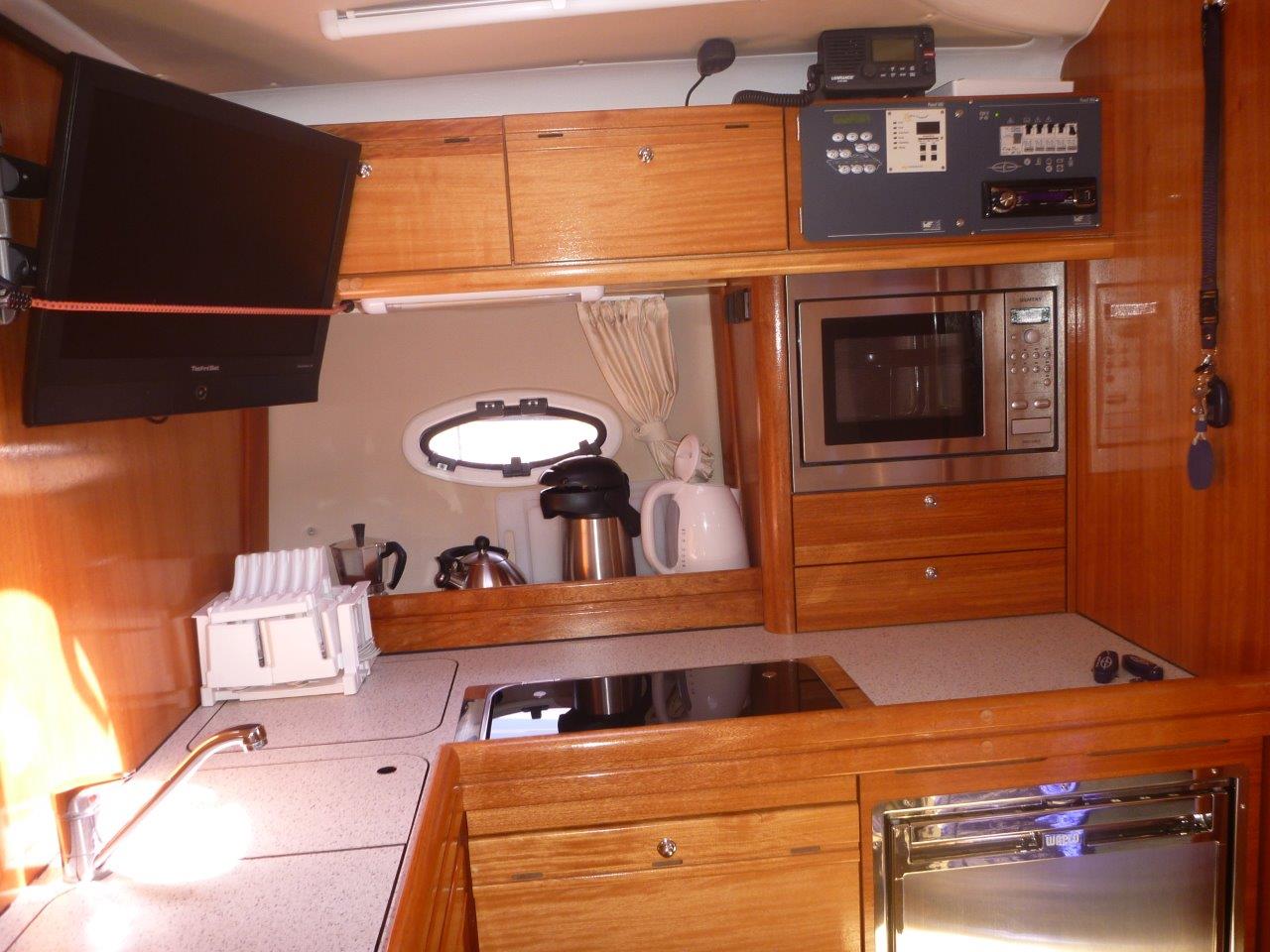 | Navigation | Barometer, Fernglas, GPS mit Kartenplotter im Cockpit, Hafenhandbücher, Handpeilkompass, Navigationsbesteck, Seekarten, Tridata (Log, Echolot, Windm.) |