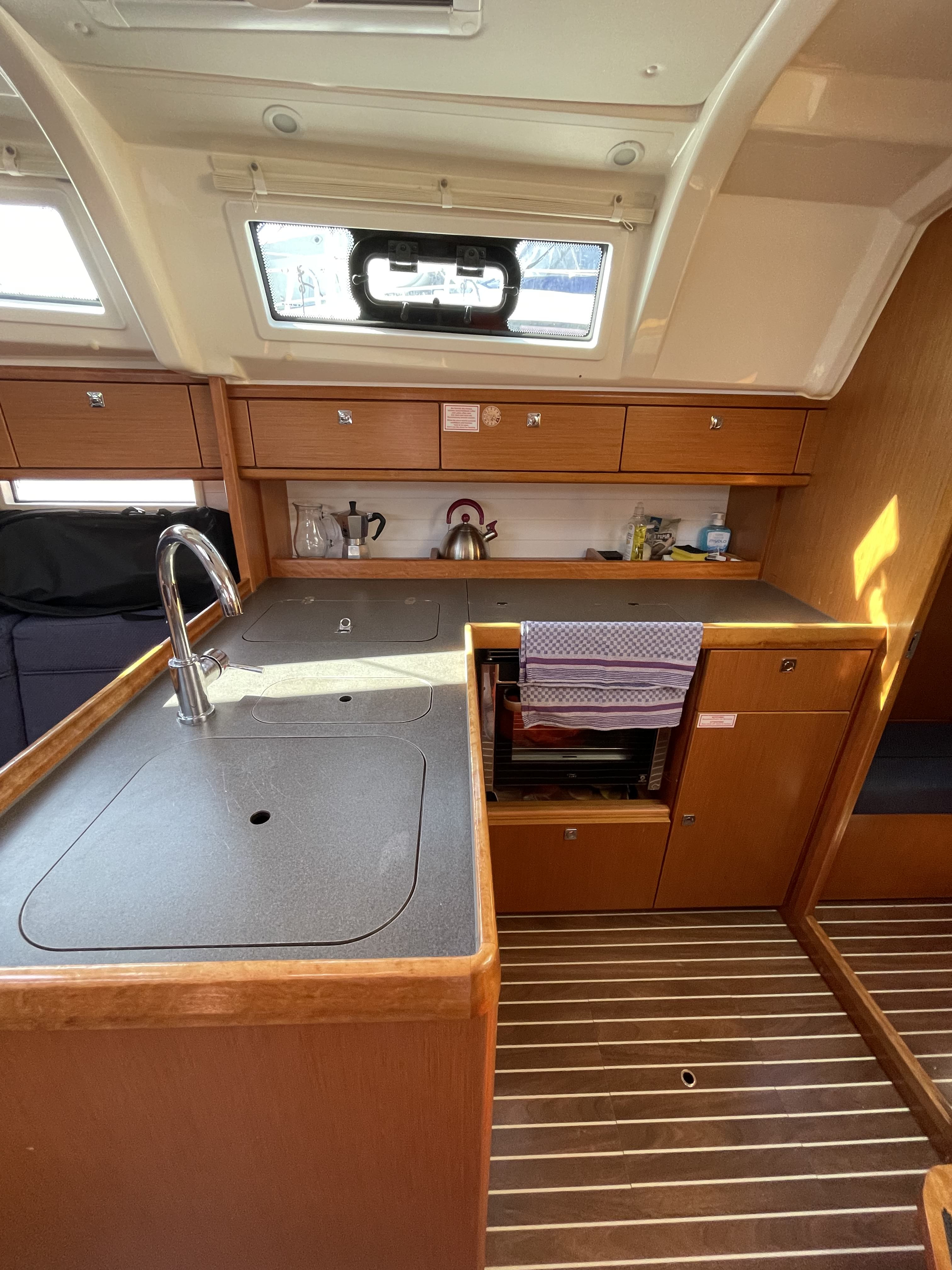 | Navigation | GPS mit Kartenplotter im Cockpit, Kompass, Navigationsbesteck, Seekarten, Sumlog, Tiefenmesser, Windmesser |