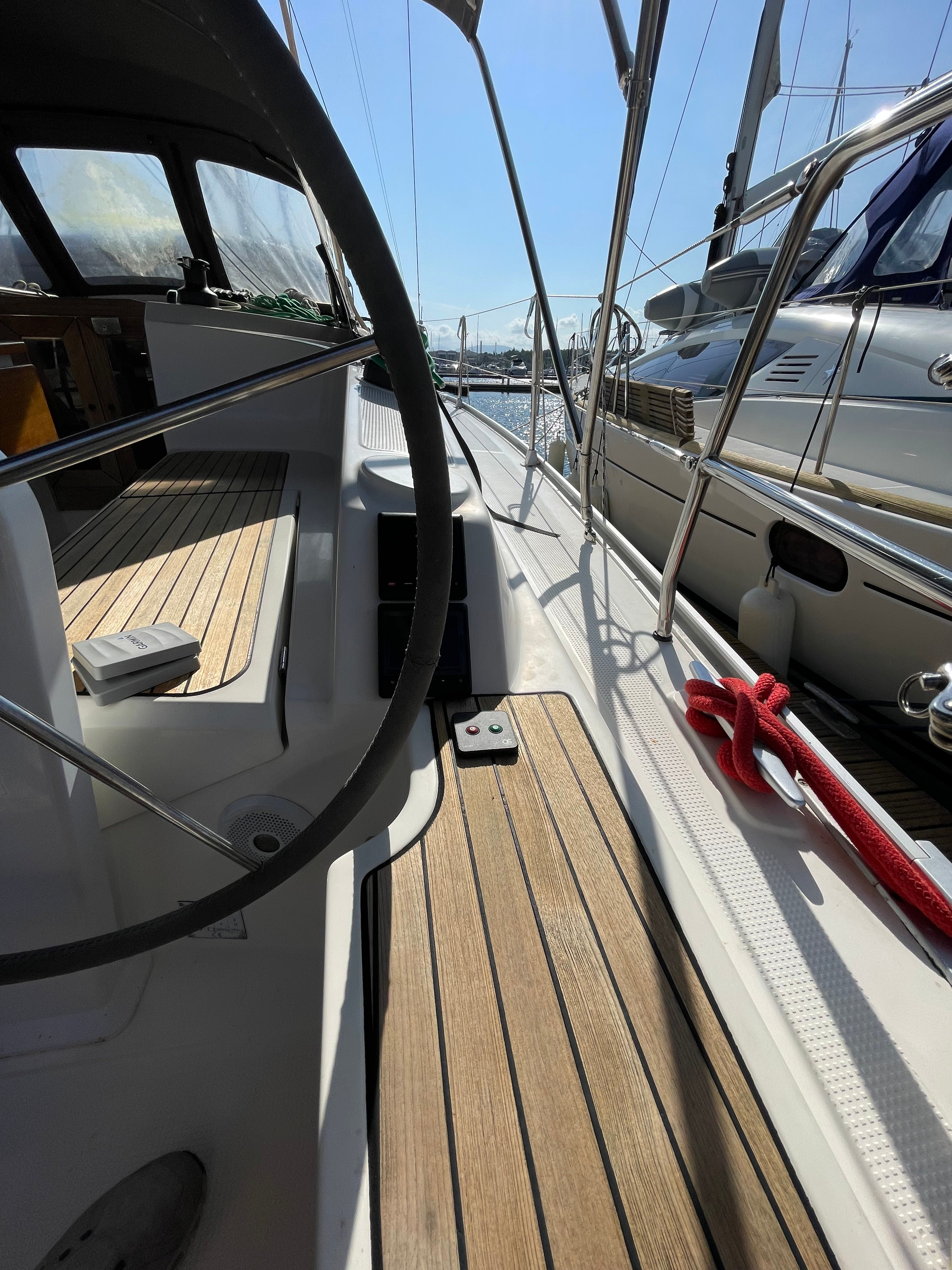 | Outside | 220 V-Landanschluss, Anker mit Kette, Badeplattform, Biminitop, Cockpitdusche, Cockpitlautsprecher, elektr. Ankerwinsch, Solaranlage, Sprayhood |