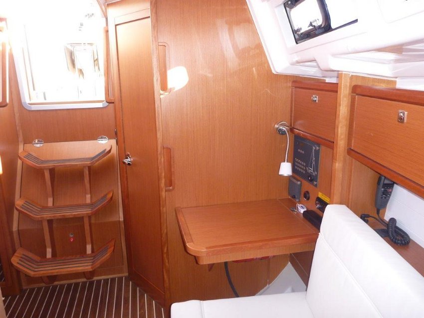 | Navigation | Barometer, Fernglas, GPS mit Kartenplotter im Cockpit, Hafenhandbücher, Navigationsbesteck, Seekarten, Tridata (Log, Echolot, Windm.) |