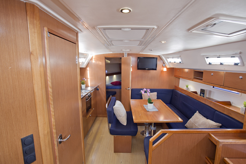 | Navigation | GPS mit Kartenplotter im Cockpit, GPS mit Kartenplotter im Salon, Kompass, Navigationsbesteck, Seekarten, Sumlog, Tiefenmesser, Windmesser |