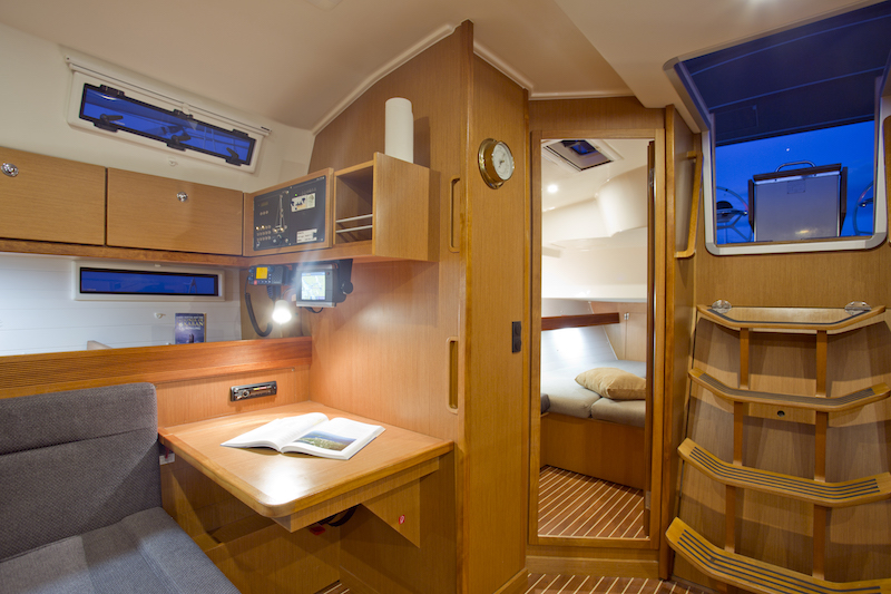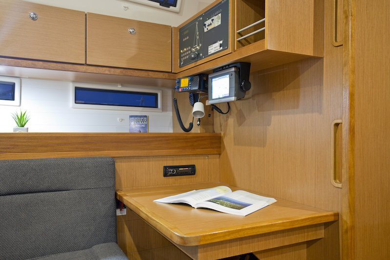 | Navigation | GPS mit Kartenplotter im Cockpit, GPS mit Kartenplotter im Salon, Kompass, Navigationsbesteck, Seekarten, Sumlog, Tiefenmesser, Windmesser |