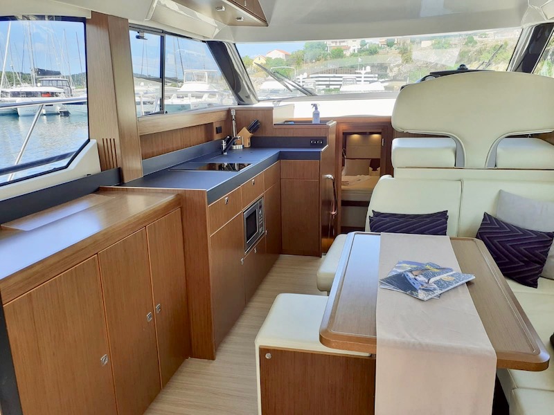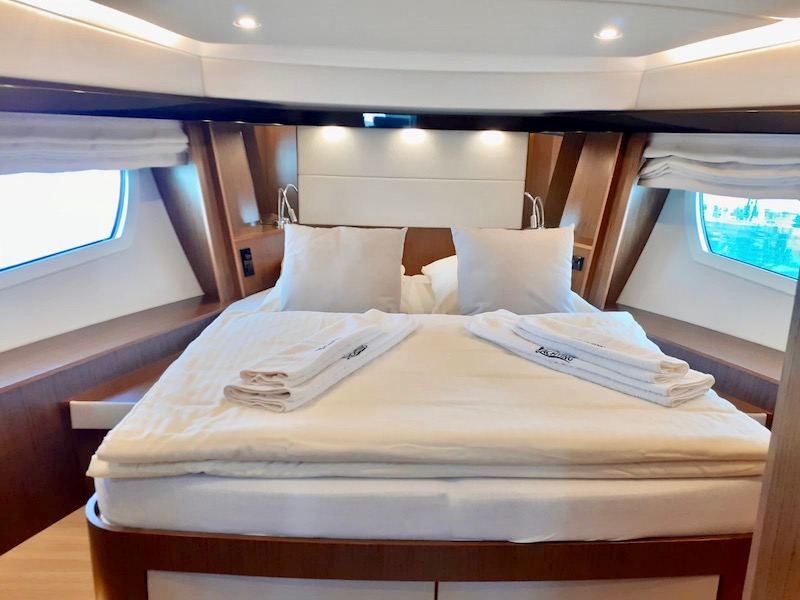 | Safety | AIS Empfänger, Autopilot, Bordapotheke, Bugstrahlruder, Feuerlöscher, Notsignale, Rettungsinsel, Rettungswesten, Sicherheitsausrüstung, UKW-Funk |