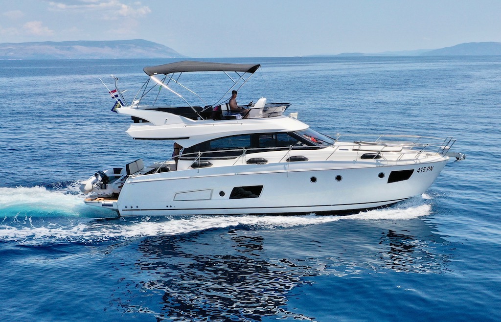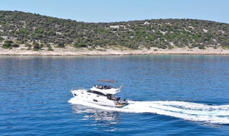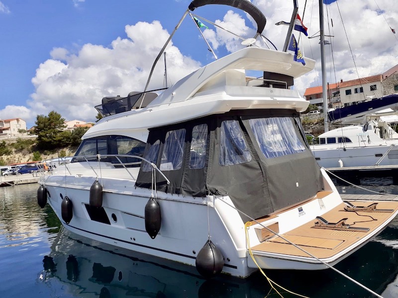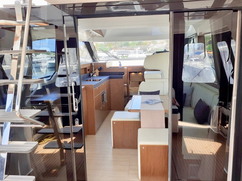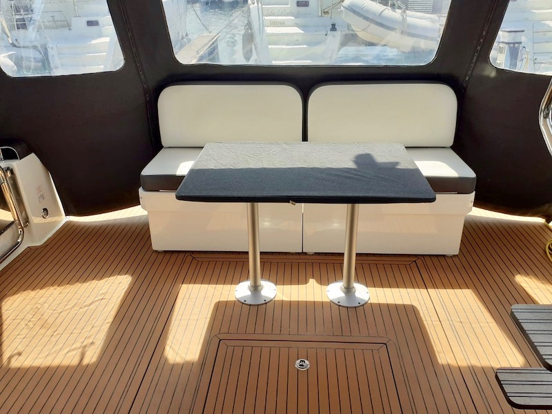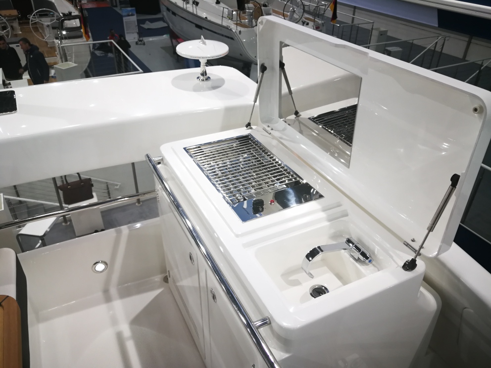 | Outside | Außendusche, Badeplattform (hydr.), Biminitop, Cockpitdusche, Cockpitlautsprecher, Flybridge, Grill, hydraul. Gangway, Unterwasserbeleuchtung |