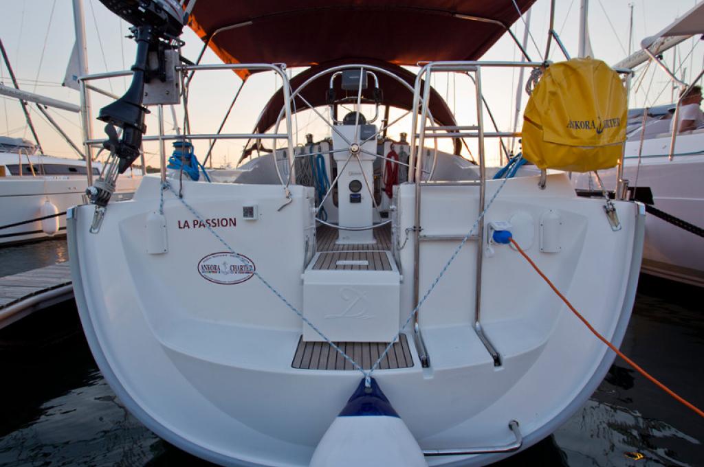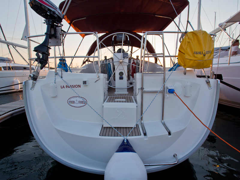 | Outside | 220 V-Landanschluss, Anker mit Kette, Biminitop, Cockpitdusche, Cockpitlautsprecher, Cockpittisch, elektr. Ankerwinsch, Heckdusche, Sprayhood, Teak im Cockpit |