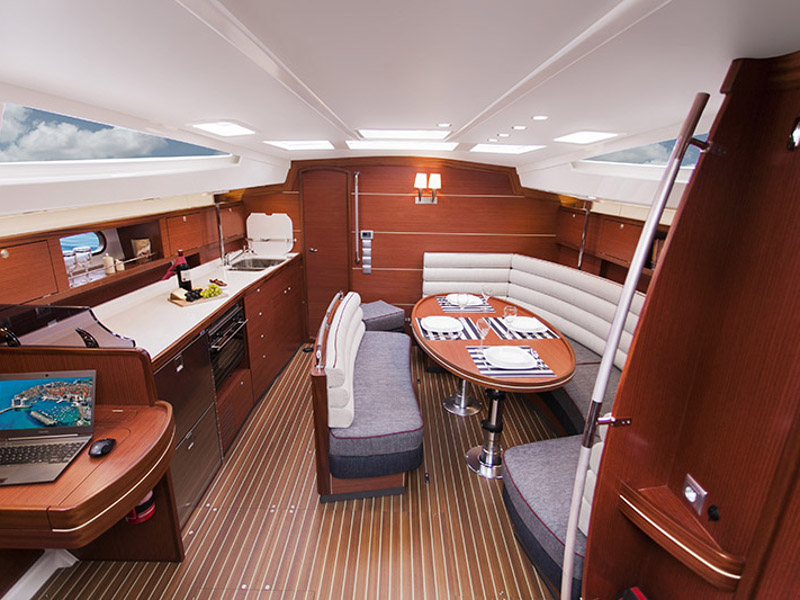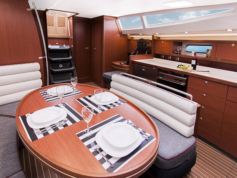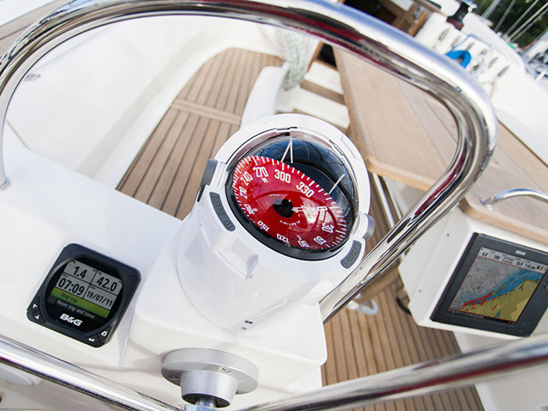 | Navigation | Echolot, GPS mit Kartenplotter im Cockpit, GPS mit Kartenplotter im Salon, Kompass, Navigationsbesteck, Seekarten, Sumlog, Windmesser |