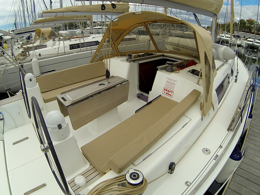 | Outside | 220 V-Landanschluss, Badeleiter, Biminitop, Cockpitdusche, Cockpitpolster, Cockpittisch, elektr. Ankerwinsch, Solaranlage, Sprayhood |