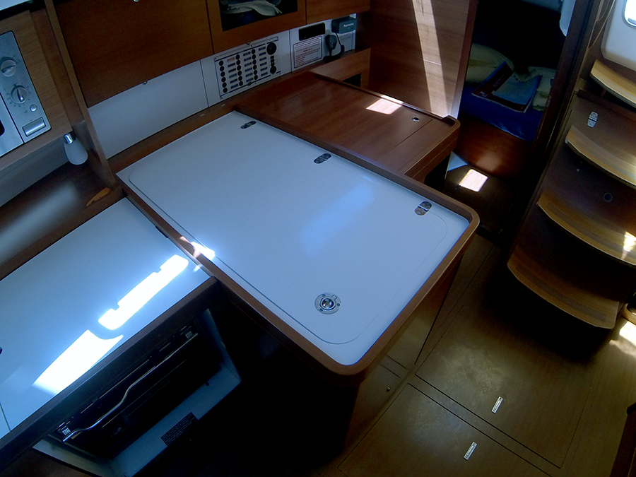 | Outside | 220 V-Landanschluss, Biminitop, Bugspriet, Cockpitdusche, Cockpitpolster, Cockpittisch, elektr. Ankerwinsch, Sprayhood, Teakdeck |