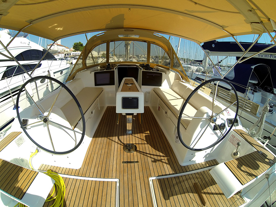 | Outside | 220 V-Landanschluss, Badeleiter, Biminitop, Cockpitdusche, Cockpitpolster, Cockpittisch, elektr. Ankerwinsch, Sprayhood |