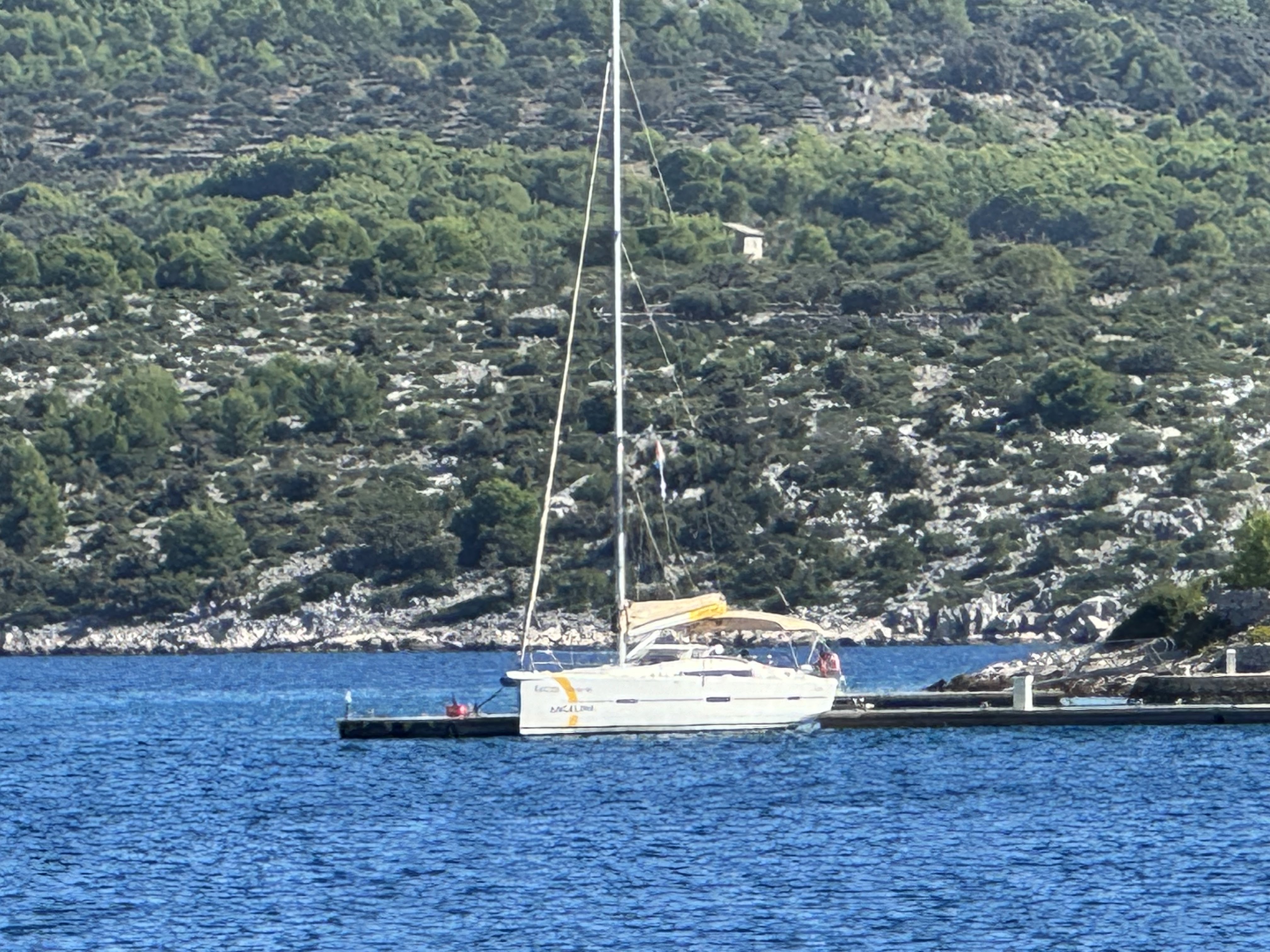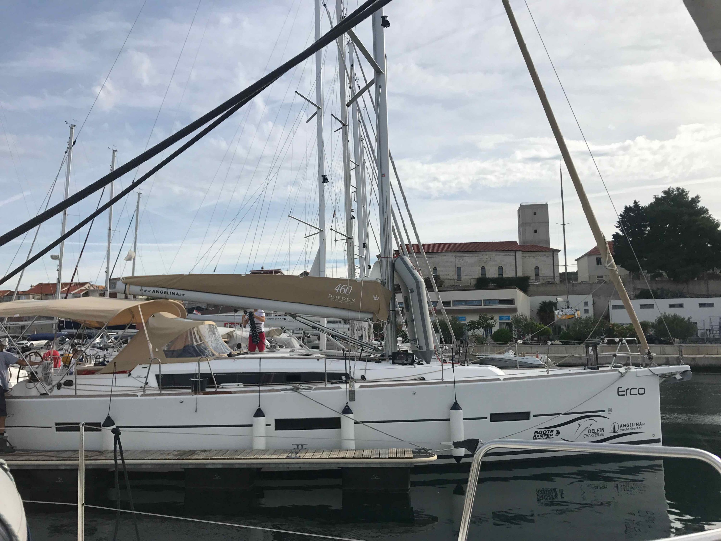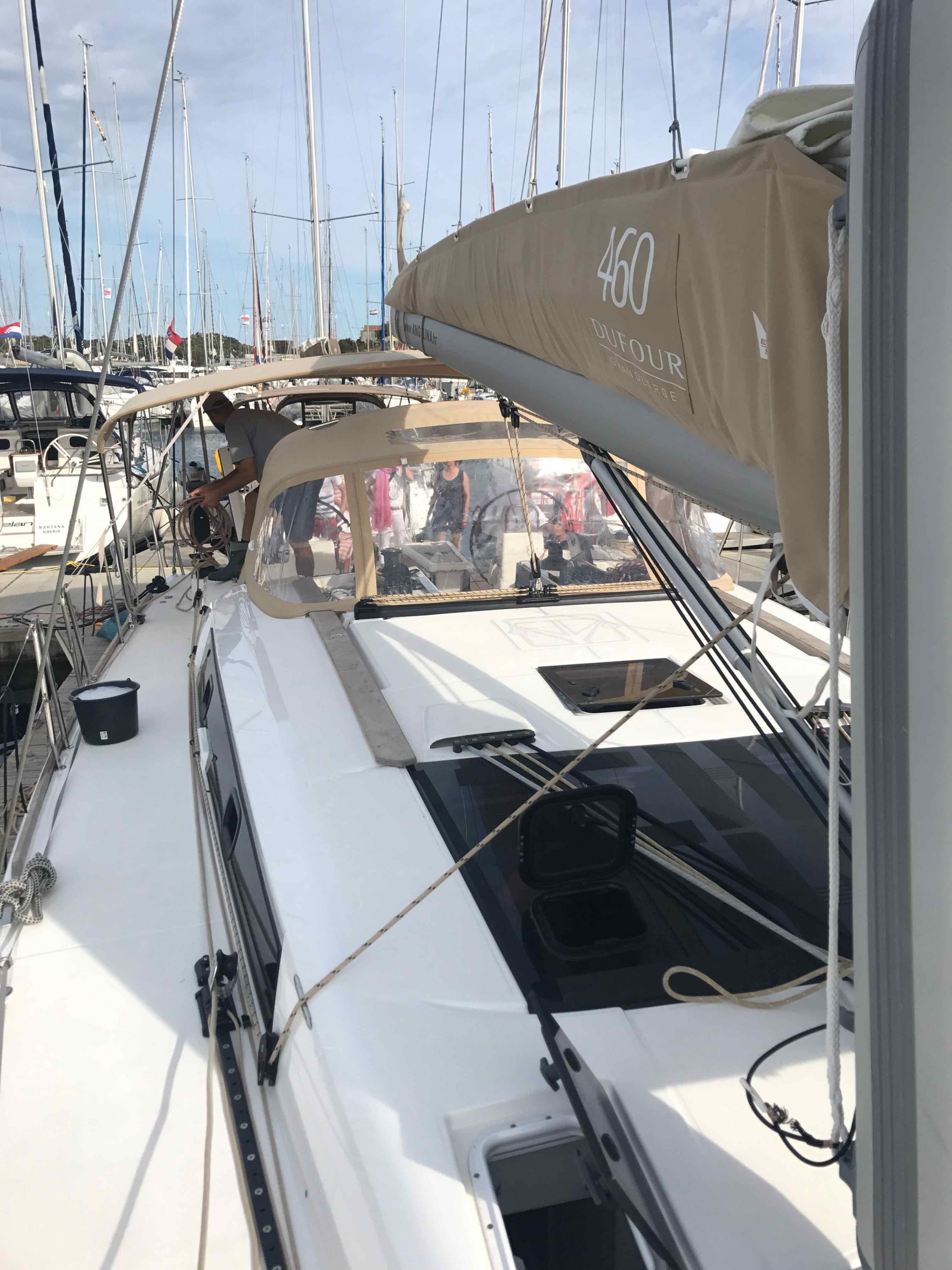 | Outside | 220 V-Landanschluss, Badeplattform, Biminitop, Bootshaken, Cockpitdusche, Cockpitkühlschrank, Cockpitlautsprecher, Cockpitpolster, Cockpittisch, Delta-Anker, elektr. Ankerwinsch, Fender, Festmacherleinen, Gangway, Grill, Kugelfender, Solaranlage, Sprayhood, Teak im Cockpit, Wasserschlauch, Winschen |