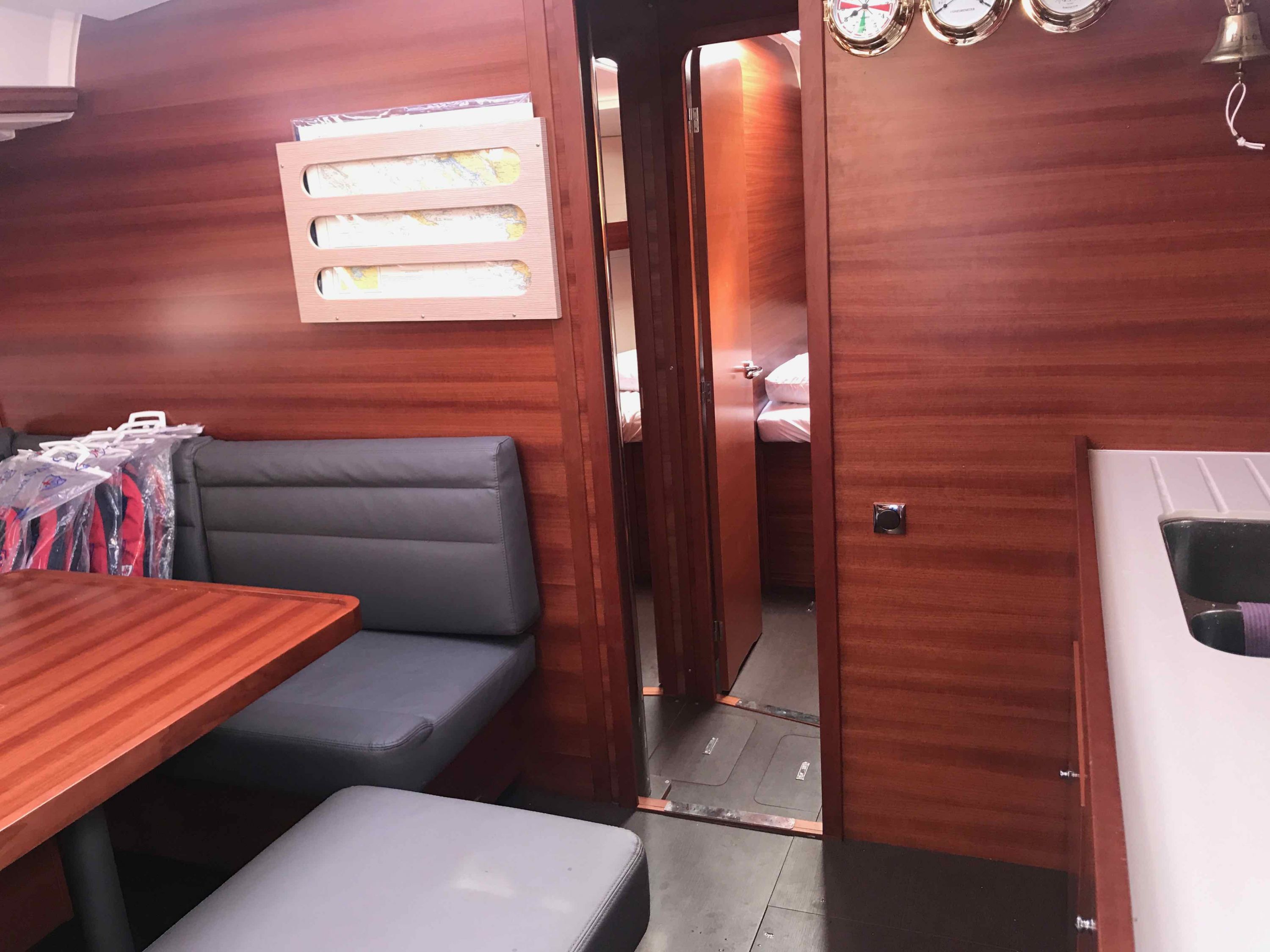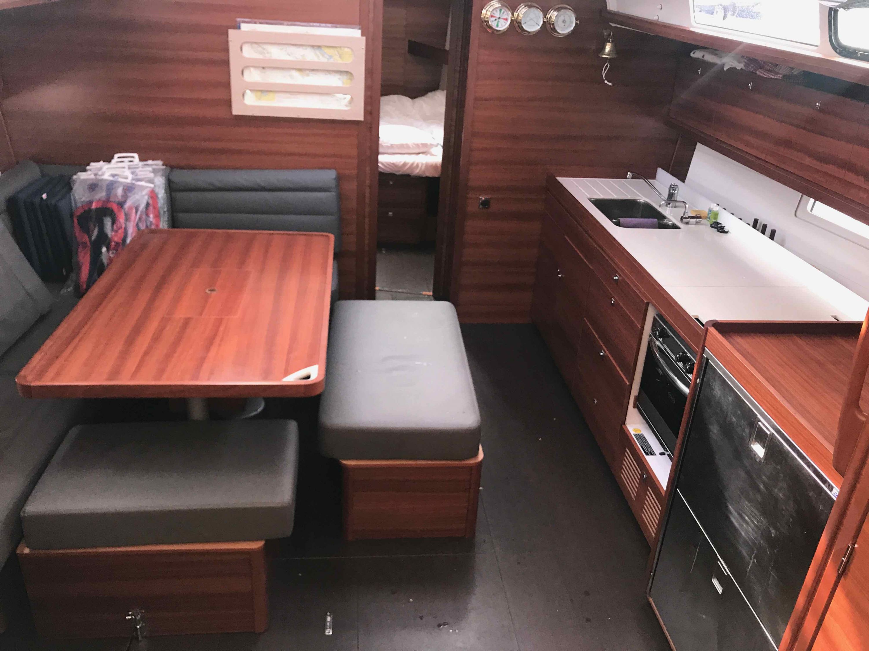 | Safety | Autopilot, Blitzboje, Bordapotheke, Bordwerkzeug, Bugstrahlruder, elektr. Bilgepumpe, Feststoffschwimmwesten, Feuerlöscher, Handbilgepumpe, Lifebelts, Nebelhorn, Notpinne, Notsignale, Radarreflektor, Rettungsinsel, Taschenlampe, UKW-Funk, Zweitanker |