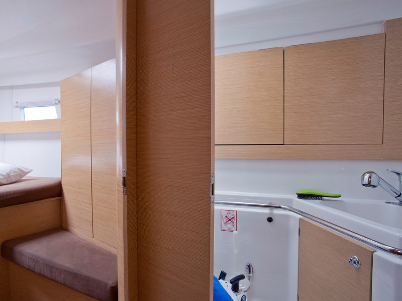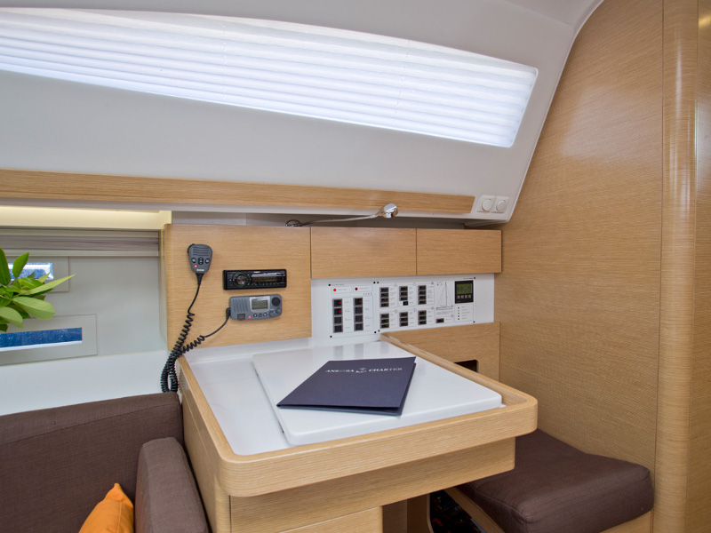 | Outside | 220 V-Landanschluss, Anker mit Kette, Badeplattform, Biminitop, Cockpitdusche, Cockpitlautsprecher, Cockpittisch, elektr. Ankerwinsch, Heckdusche, Sprayhood, Teak im Cockpit |