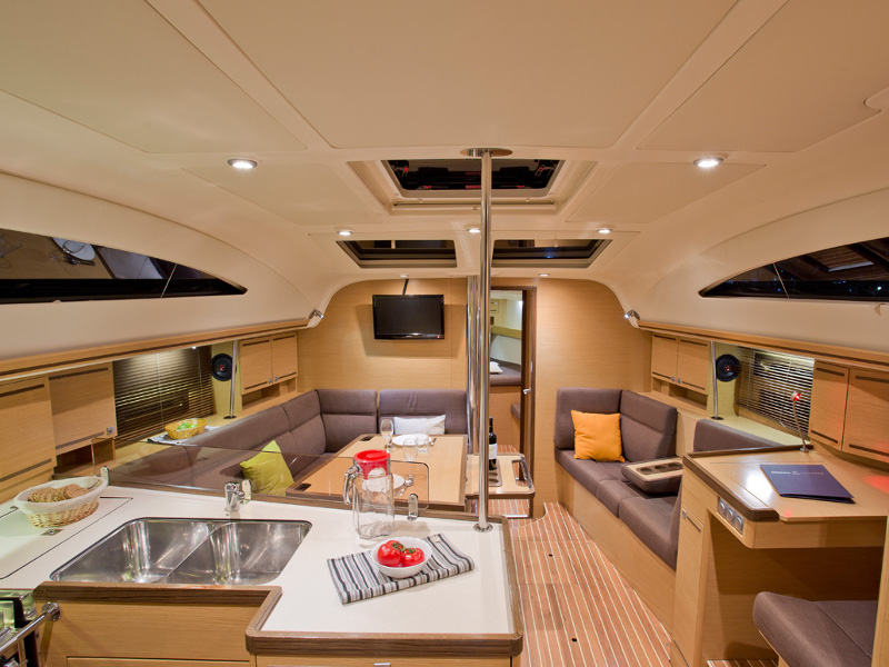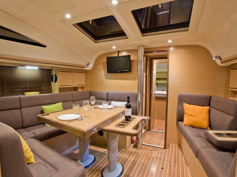 | Outside | 220 V-Landanschluss, Anker mit Kette, Badeleiter, Badeplattform, Biminitop, Cockpitdusche, Cockpitlautsprecher, Cockpittisch, elektr. Ankerwinsch, Fender, Heckdusche, Sprayhood, Teak im Cockpit |