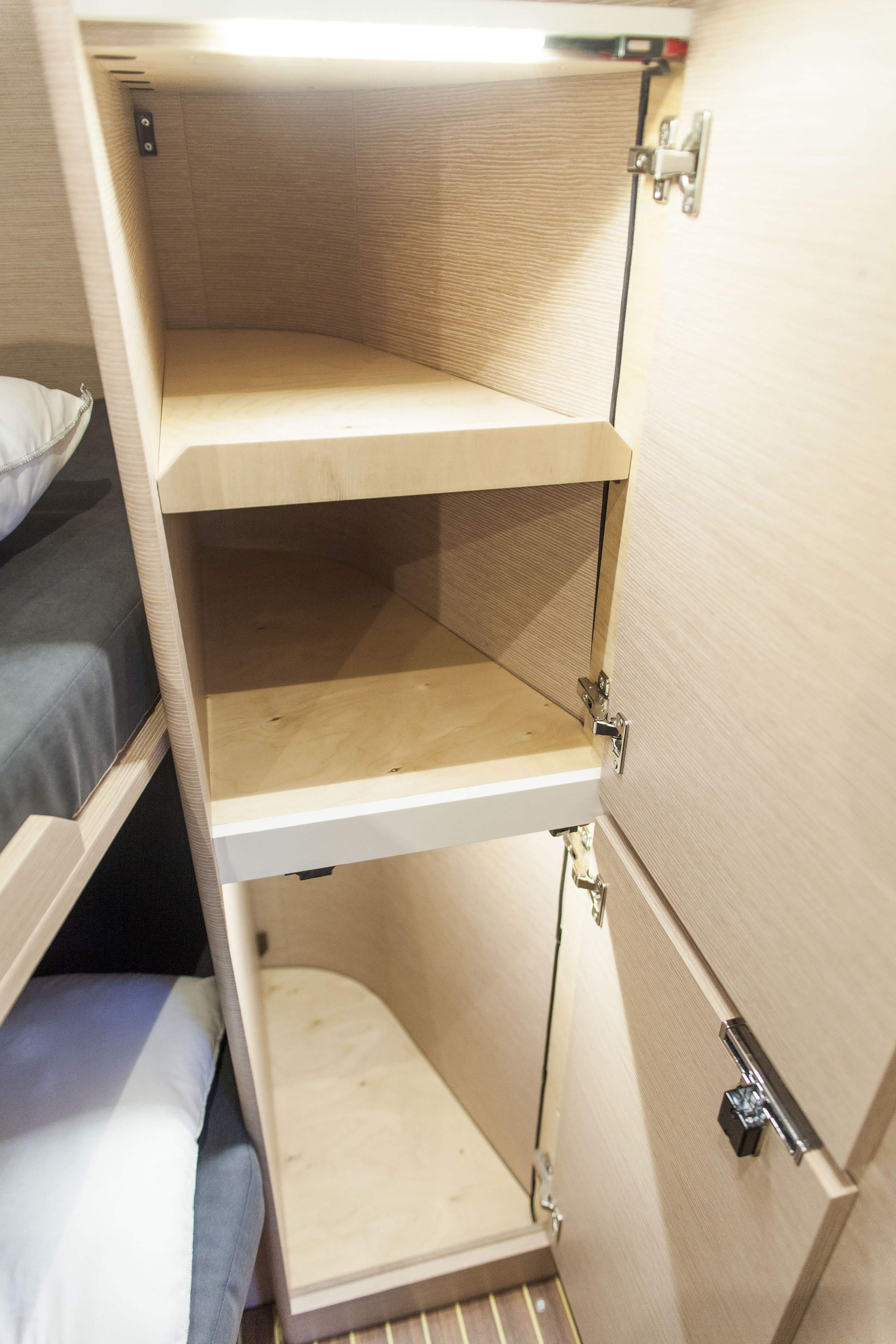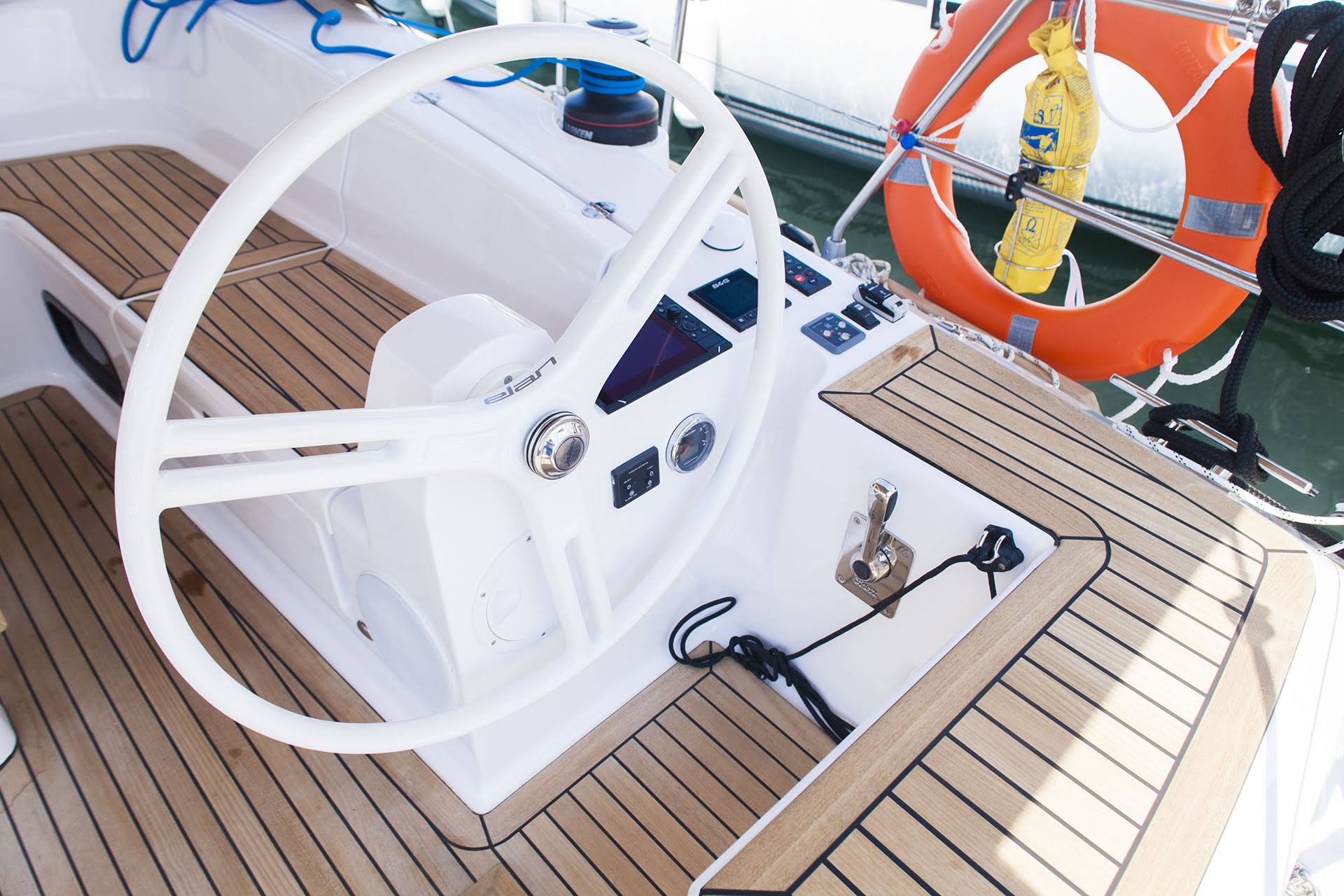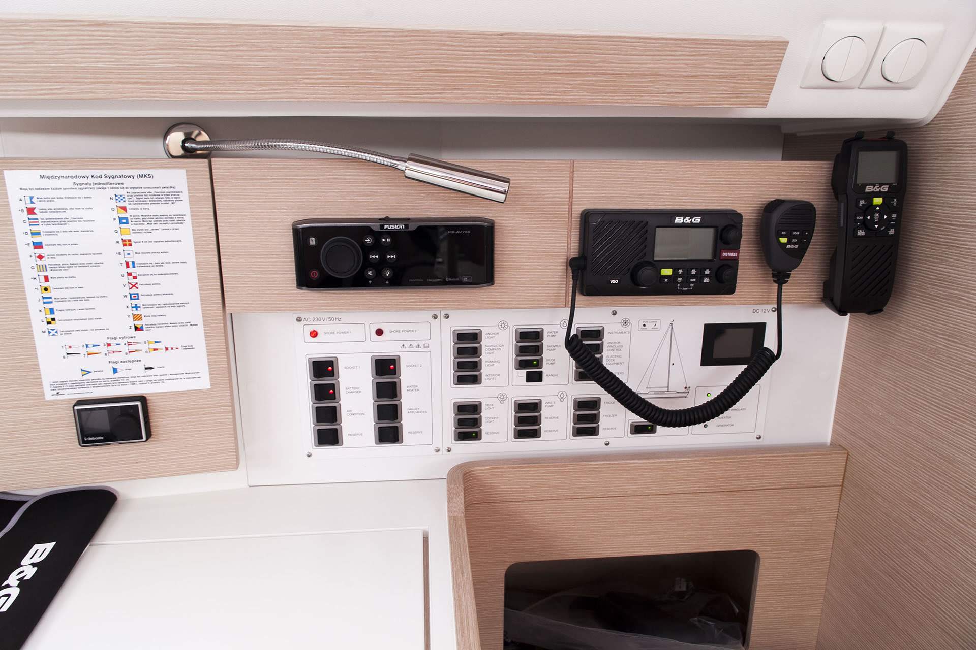 | Safety | Autopilot, Bordapotheke, Bugstrahlruder, Feststoffschwimmwesten, Feuerlöscher, Markierungsboje, Navtex, Notsignale, Rettungsinsel, Rettungsring, Schwimmleine, Sicherheitsgurt, UKW-Funk |