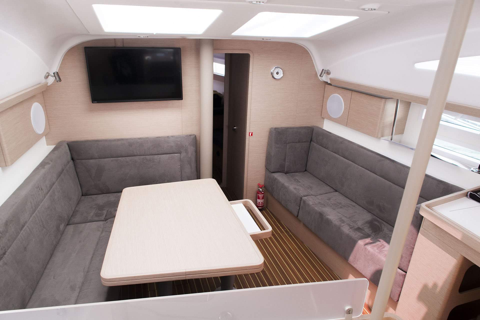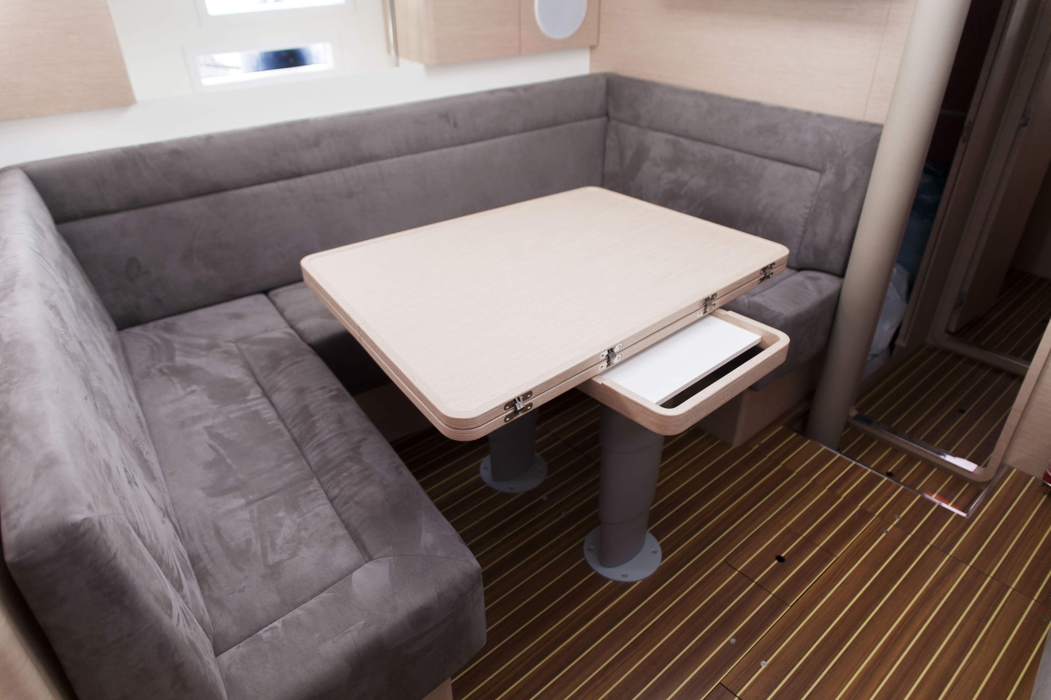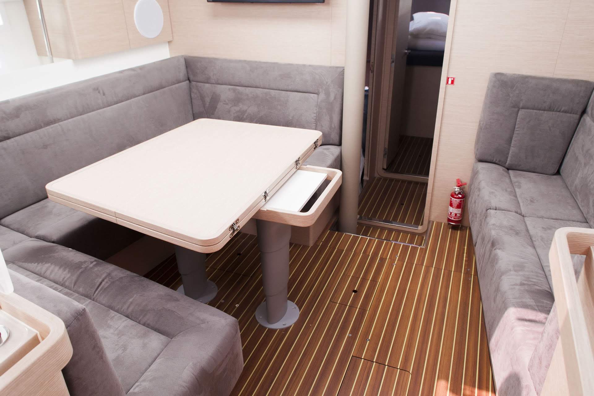 | Outside | 220 V Landstromkabel mit Ladegerät, 220 V-Landanschluss, Anker mit Kette, Badeleiter, Badeplattform, Biminitop, Cockpitdusche, Cockpitlautsprecher, Cockpitpolster, Cockpittisch, Deckpolster, elektr. Ankerwinsch, Sprayhood, Teak im Cockpit, Windex, Winschen |