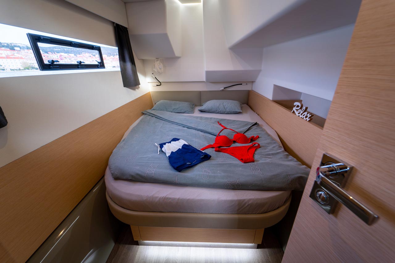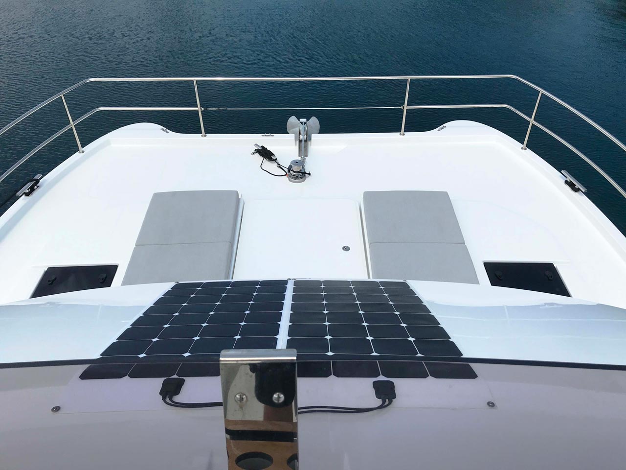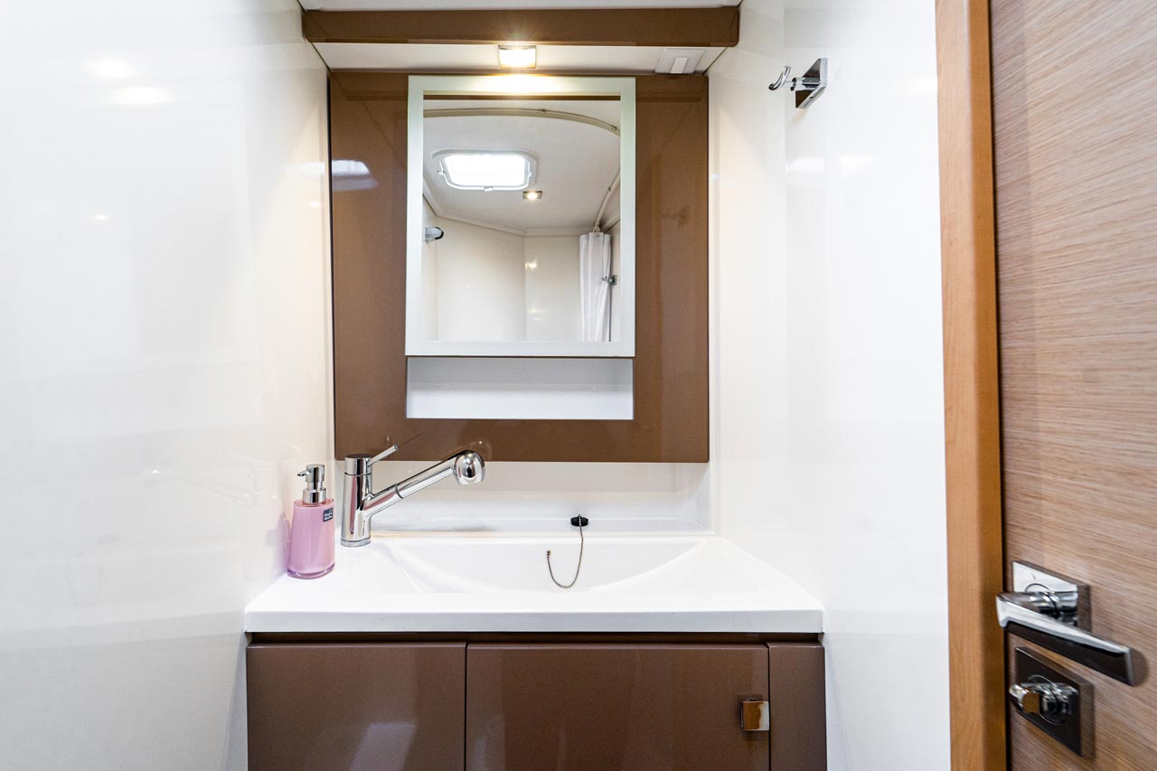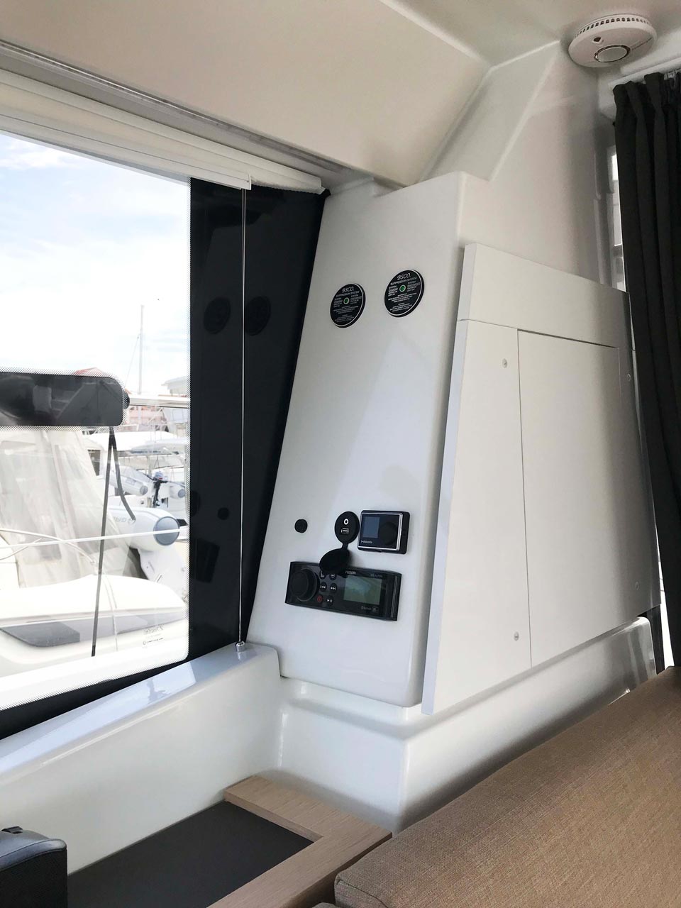 | Inside | Borduhr, Dusche, Eisbox, Heizung, Inverter 12V/220V, Kühlschrank, Ladegerät, Luftpumpe für Beiboot, Pantryausstattung, Radio mit CD, AUX und USB, Ventilatoren in Kabinen, Warmwasser, WC (elektr.) |