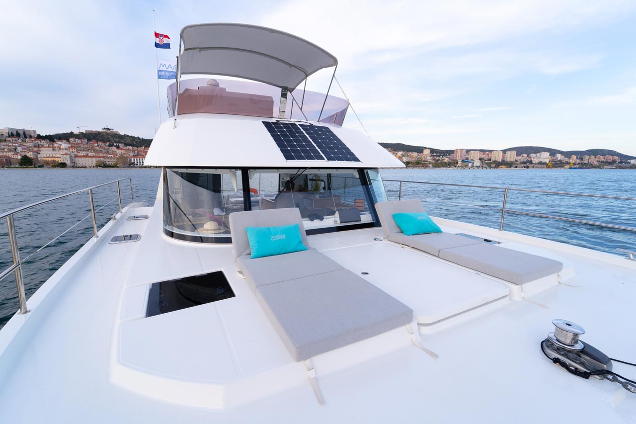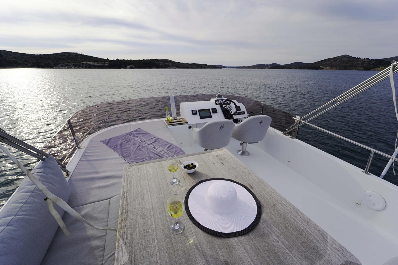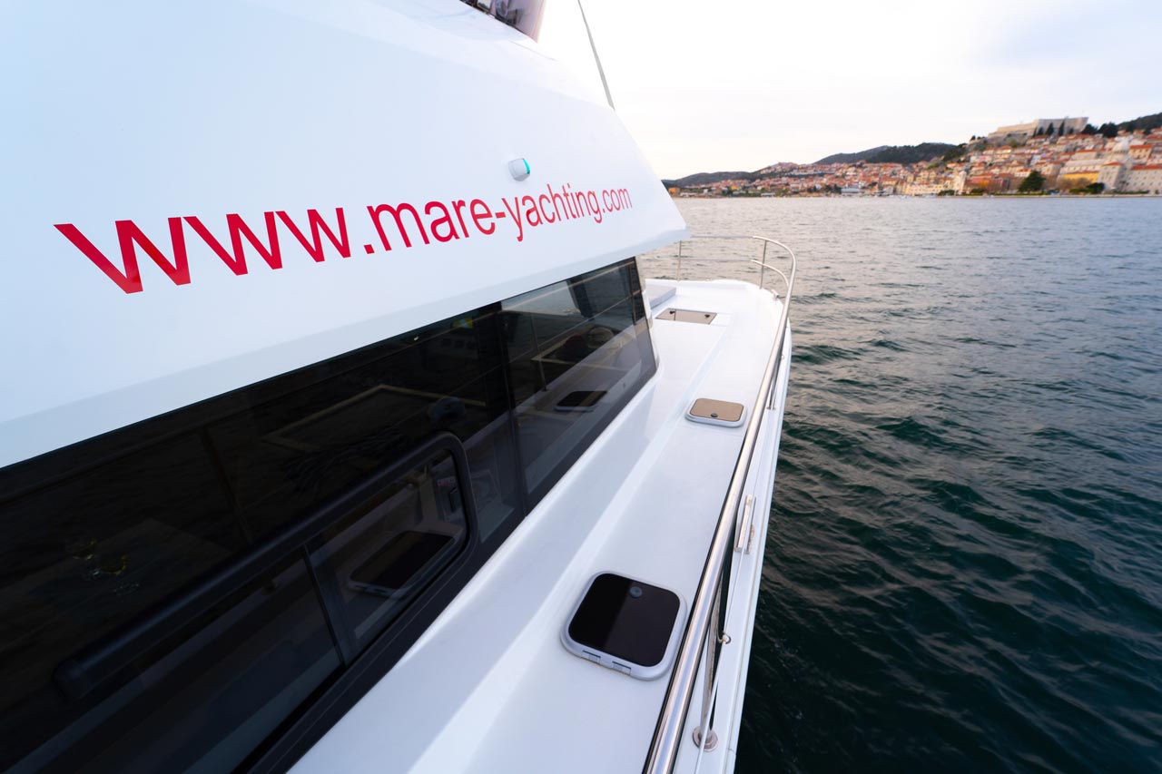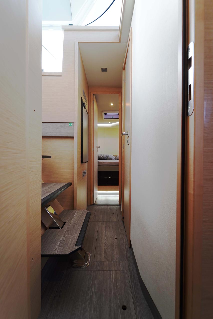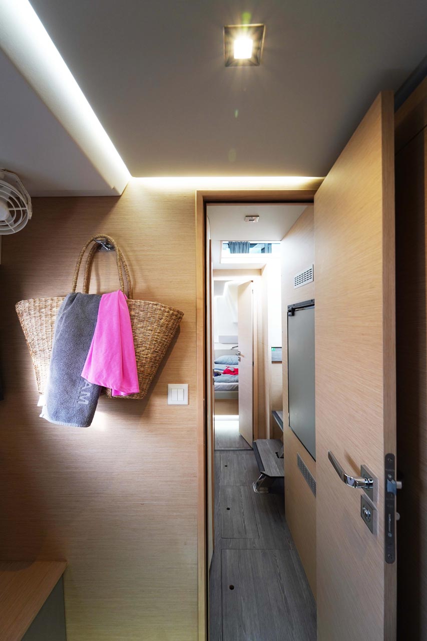 | Inside | Borduhr, Dusche, Eisbox, Heizung, Inverter 12V/220V, Kühlschrank, Ladegerät, Luftpumpe für Beiboot, Pantryausstattung, Radio mit CD, AUX und USB, Ventilatoren in Kabinen, Warmwasser, WC (elektr.) |