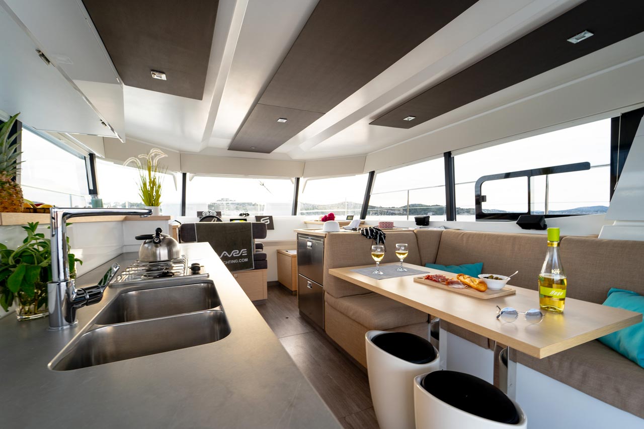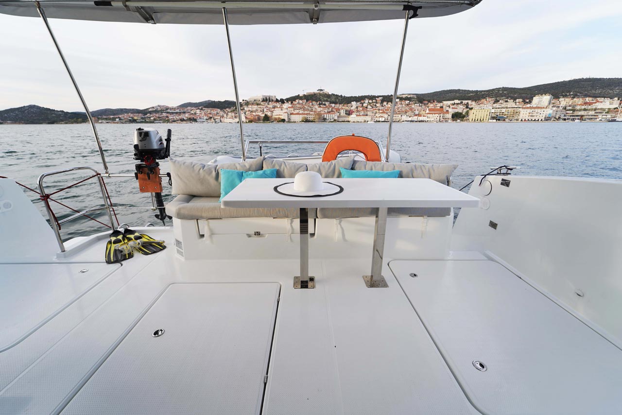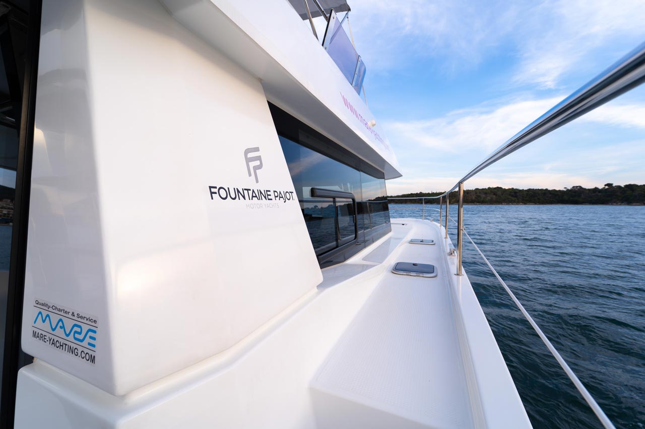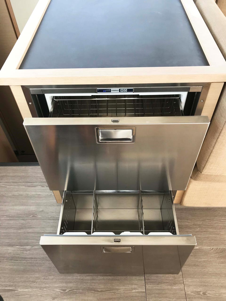 | Inside | Borduhr, Dusche, Eisbox, Heizung, Inverter 12V/220V, Kühlschrank, Ladegerät, Luftpumpe für Beiboot, Pantryausstattung, Radio mit CD, AUX und USB, Ventilatoren in Kabinen, Warmwasser, WC (elektr.) |