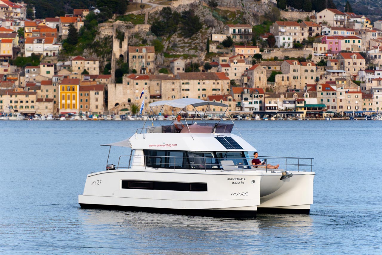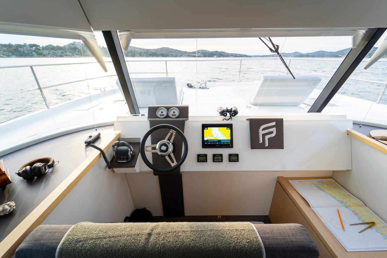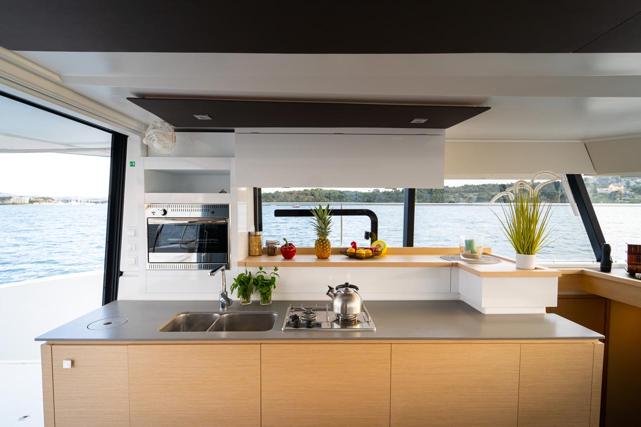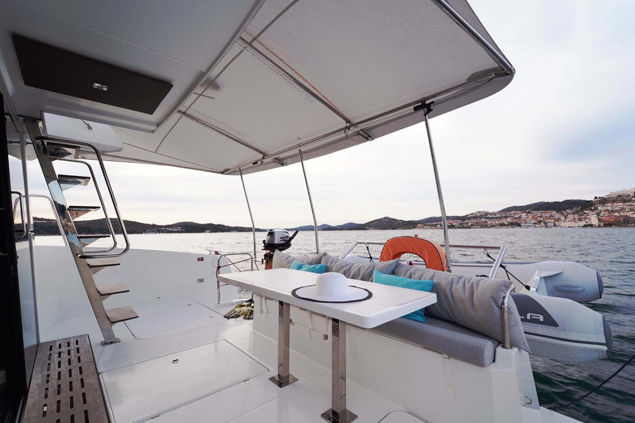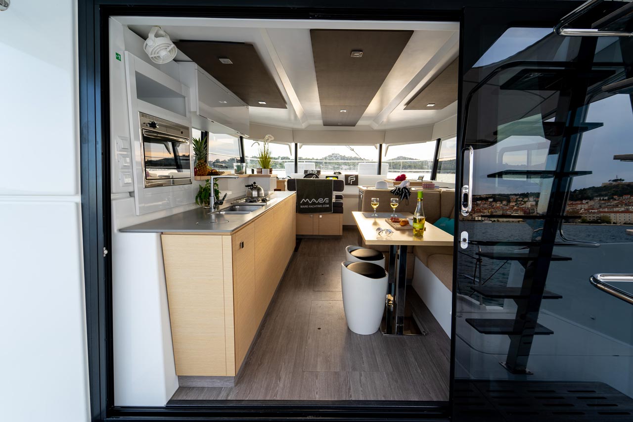 | Inside | Borduhr, Dusche, Eisbox, Heizung, Inverter 12V/220V, Kühlschrank, Ladegerät, Luftpumpe für Beiboot, Pantryausstattung, Radio mit CD, AUX und USB, Ventilatoren in Kabinen, Warmwasser, WC (elektr.) |