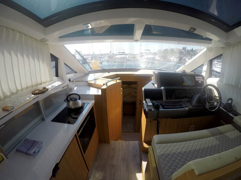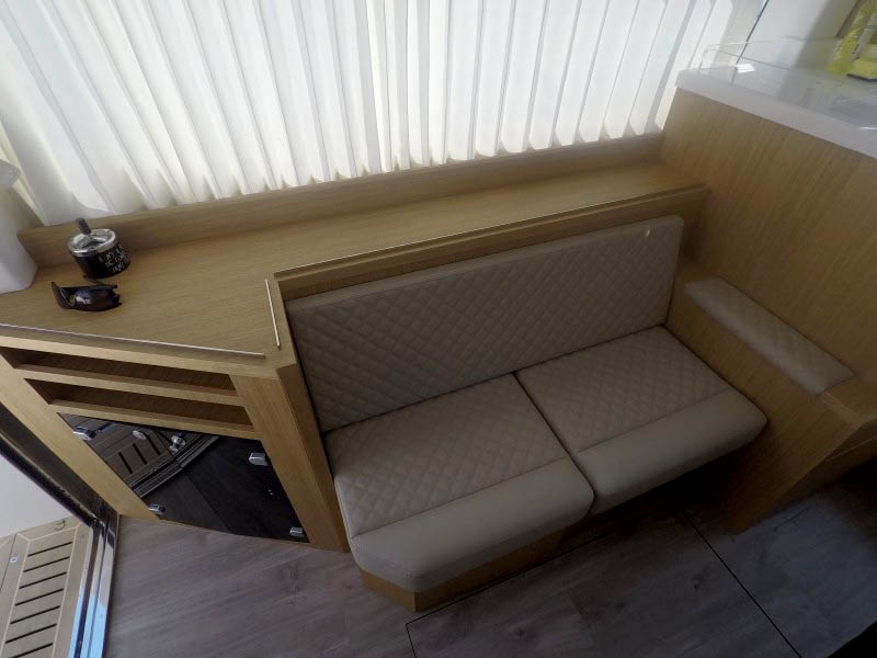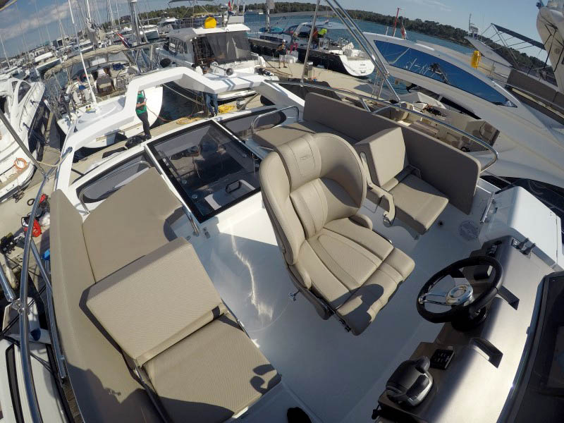 | Outside | 220 V-Landanschluss, Biminitop, Cockpitdusche, Cockpitpolster, Cockpittisch, elektr. Ankerwinsch, Flybridge |