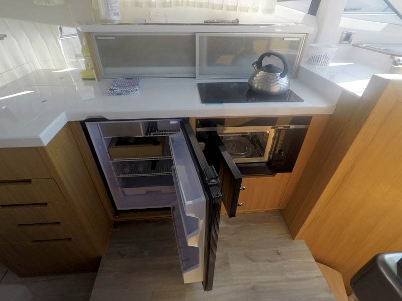 | Inside | Backofen, Gasherd, Generator, Heizung, Klimaanlage (ohne Landstrombedarf), Kühlschrank, Radio mit CD/MP3/USB, TV + DVD, Warmwasser |