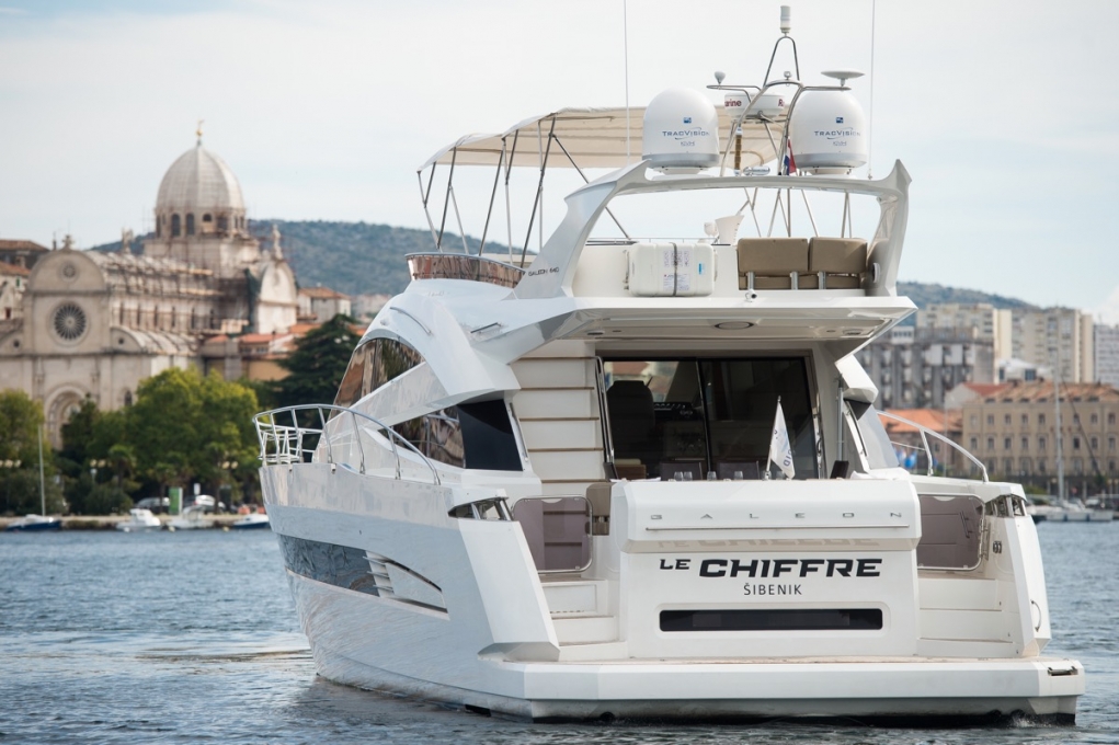 | Outside | 220 V-Landanschluss, Ankerwinsch, Badeplattform, Cockpitkühlschrank, Cockpittisch, Deckpolster, Flybridge, Gangway, Grill, hydraul. Gangway, Kühlschrank auf Flybridge, Sonnensegel, Teak auf Badeplattform, Unterwasserbeleuchtung, Wasserski, Wet Bar |
