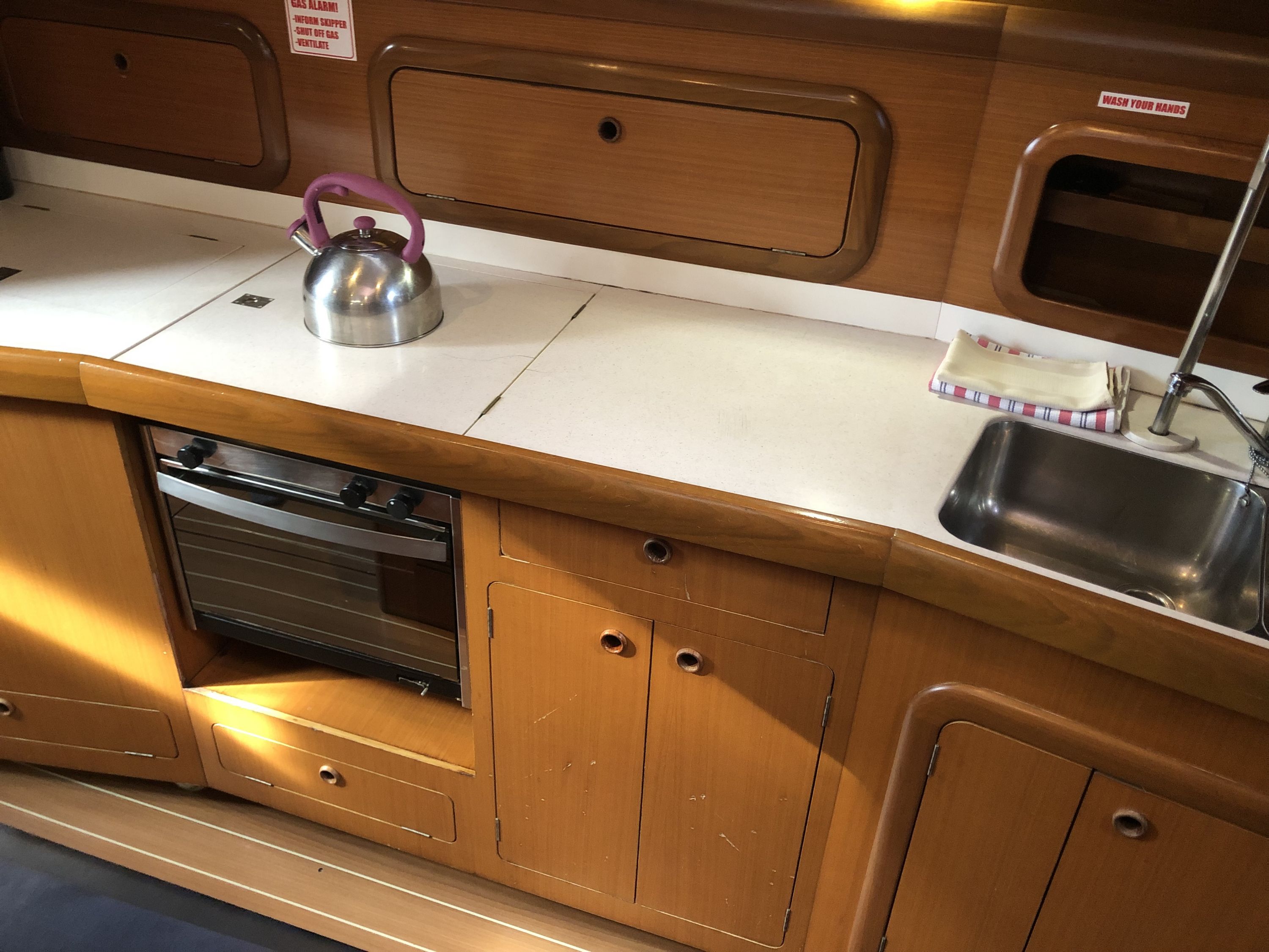 Die 20 Jahre waren auf der Yacht zu spüren, Außenbordmotor 2xdefekt, Badeleiter defekt und instabil und die Inneneinrichtung na ja, Bordelektrik nicht optimal insbesondere das Batteriemanagement war gestört - 1 Segeltag ging verloren 🥺