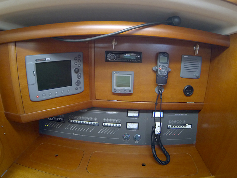 | Navigation | Barometer, Fernglas, GPS mit Kartenplotter, Hafenhandbücher, Navigationsbesteck, Radar, Seekarten, Tridata (Log, Echolot, Windm.) |