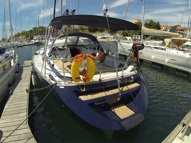 | Outside | 220 V-Landanschluss, Anker mit Kette, Anker mit Seil, Badeleiter, Biminitop, Bootshaken, Cockpitdusche, Cockpitlautsprecher, Cockpitpolster, Cockpittisch, Deckbürste, elektr. Ankerwinsch, elektr. Winsch, Fender, Festmacherleinen, Gangway, Kunststoff-Eimer (Pütz), Sprayhood, Teak im Cockpit, Treibanker, Wasserschlauch, Winschen |