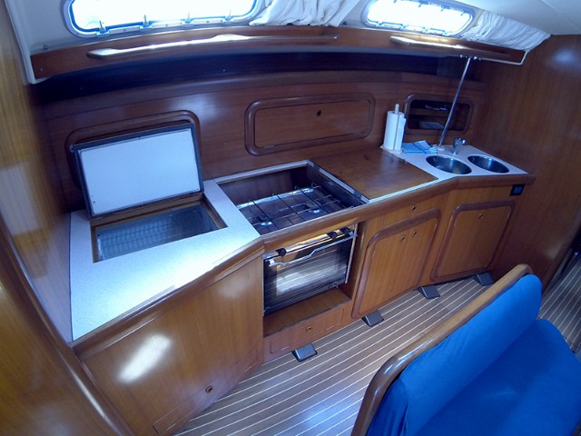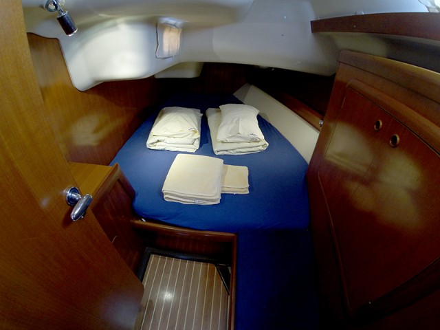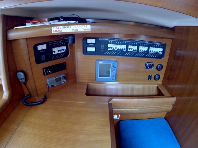 | Navigation | Barometer, Echolot, Fernglas, GPS mit Kartenplotter im Cockpit, Hafenhandbücher, Navigationsbesteck, Seekarten, Sumlog |