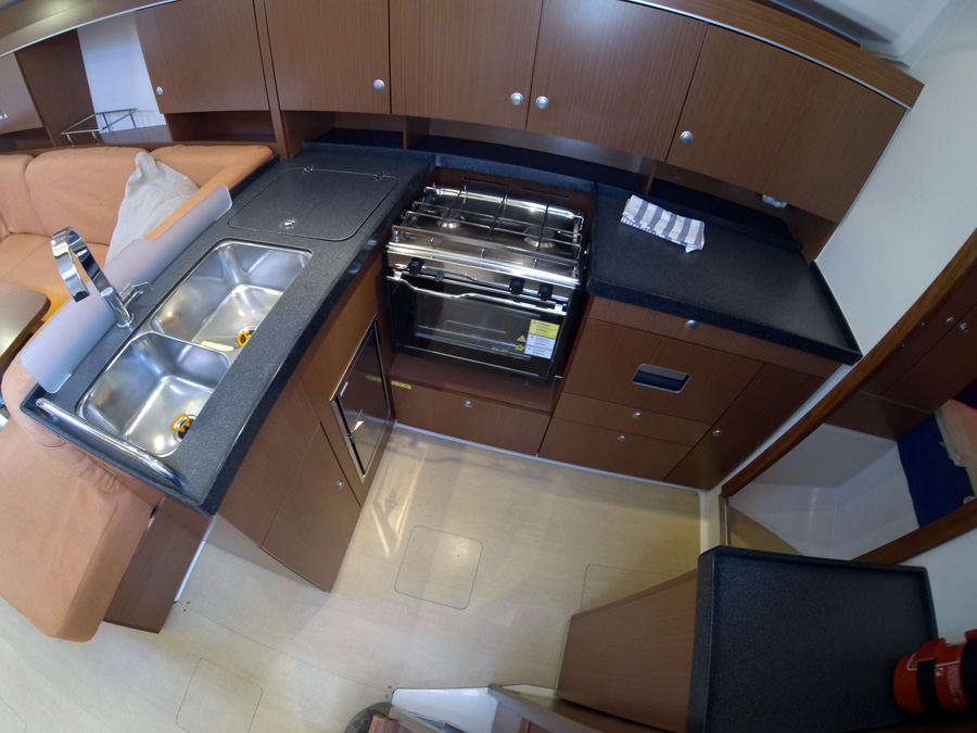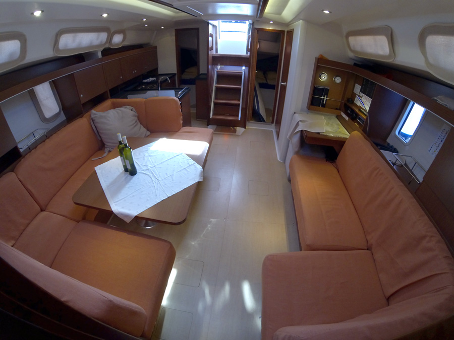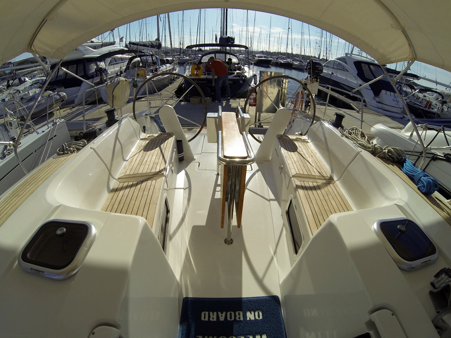 | Outside | 220 V-Landanschluss, Anker mit Kette, Anker mit Seil, Badeleiter, Biminitop, Bootshaken, Cockpitdusche, Cockpitlautsprecher, Cockpitpolster, Cockpittisch, Deckbürste, elektr. Ankerwinsch, Faltpropeller, Fender, Festmacherleinen, Gangway, Kunststoff-Eimer (Pütz), Sprayhood, Teak im Cockpit, Wasserschlauch, Winschen |