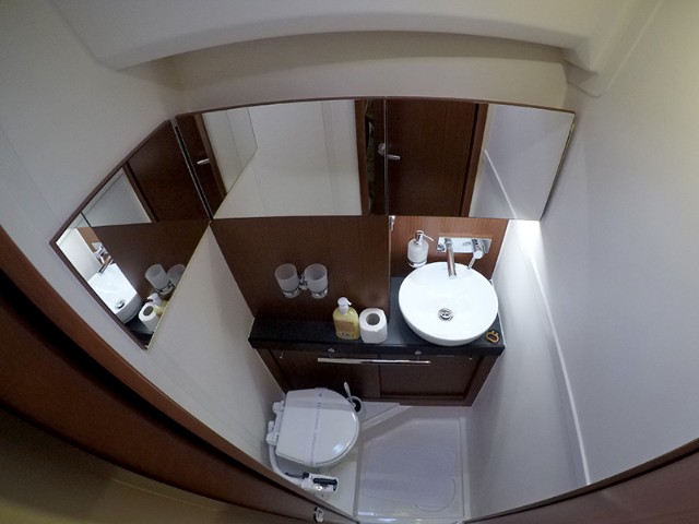 | Inside | Fäkalientank, Generator, Heizung, Klimaanlage (ohne Landstrombedarf), Kühlschrank, Luftpumpe für Beiboot, Radio mit CD, AUX und USB, TV + DVD, Warmwasser |