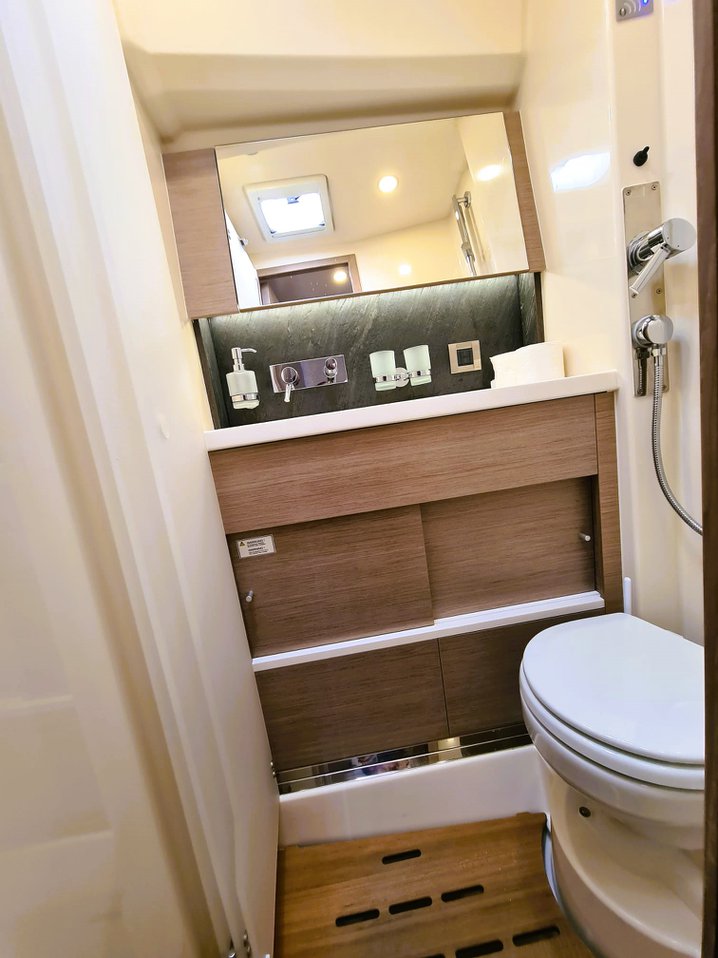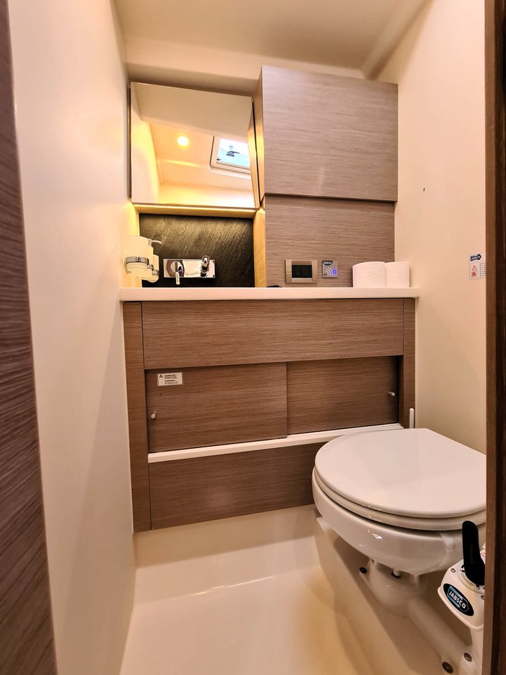 Outside Biminitop, Cockpitdusche, Cockpitlautsprecher, Cockpittisch, elektr. Ankerwinsch, elektr. Winsch, Sprayhood, Teak im Cockpit