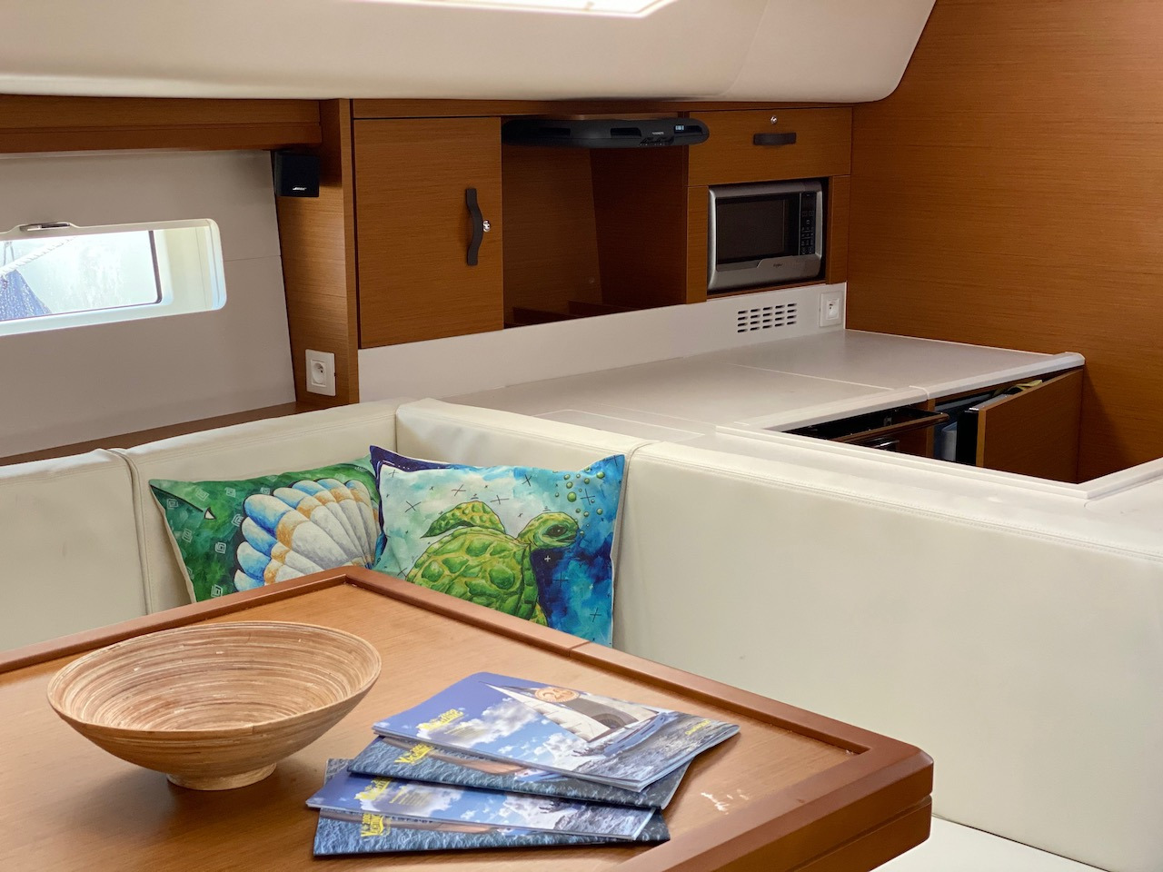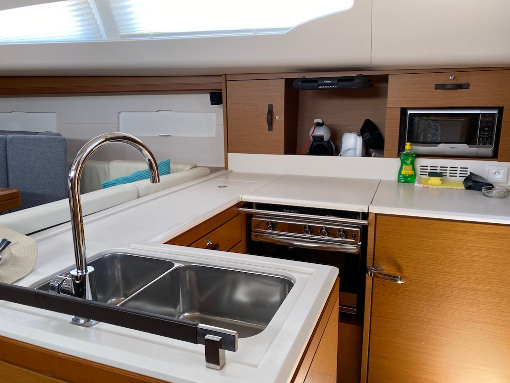 | Inside | 2. Kühlschrank, Generator, Inverter 12V/220V, Kaffeemaschine, Klimaanlage (ohne Landstrombedarf), Kühlschrank, Mikrowelle, Pantryausstattung, Radio mit Bluetooth, TV, Warmwasser, Watermaker, WC (elektr.) |