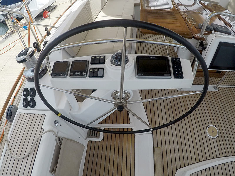 | Navigation | Barometer, Echolot, Fernglas, GPS mit Kartenplotter im Cockpit, GPS mit Kartenplotter im Salon, Hafenhandbücher, Radar, Seekarten, Sumlog |