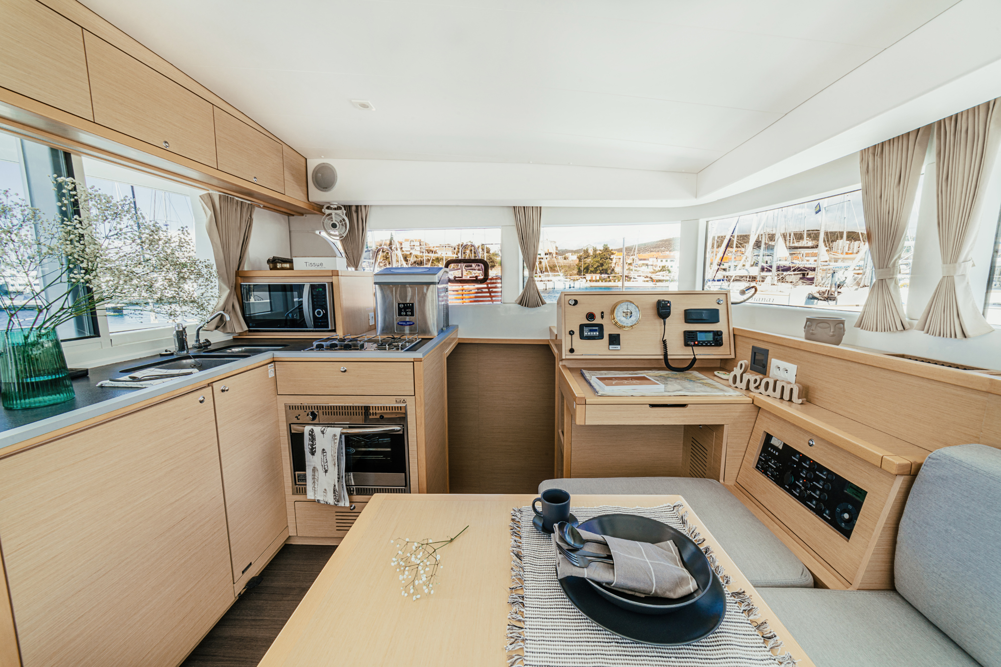 | Inside | 2. Kühlschrank, Eiswürfelmaschine, Espresso Maschine, Fäkalientank, Gasherd mit Backofen, Inverter 12V/220V, Klimaanlage (Landstrom), Kühlschrank, Mikrowelle, Pantryausstattung, TV, WC (elektr.) |