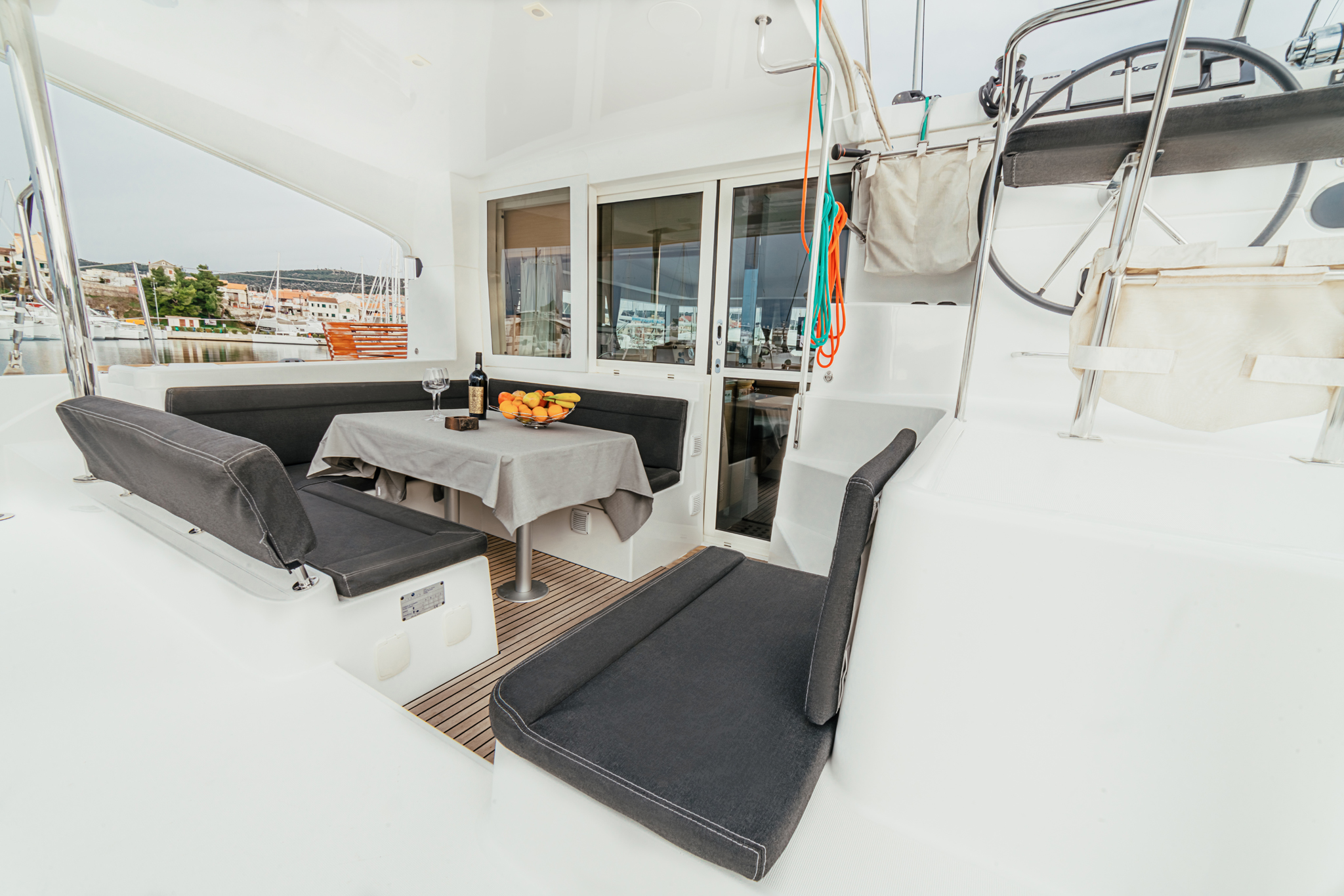 | Outside | Badeplattform, Cockpitdusche, Cockpitlautsprecher, Cockpitpolster, elektr. Ankerwinsch, elektr. Winsch, Fender, Hardtop, Solaranlage, Sprayhood, Teak im Cockpit |