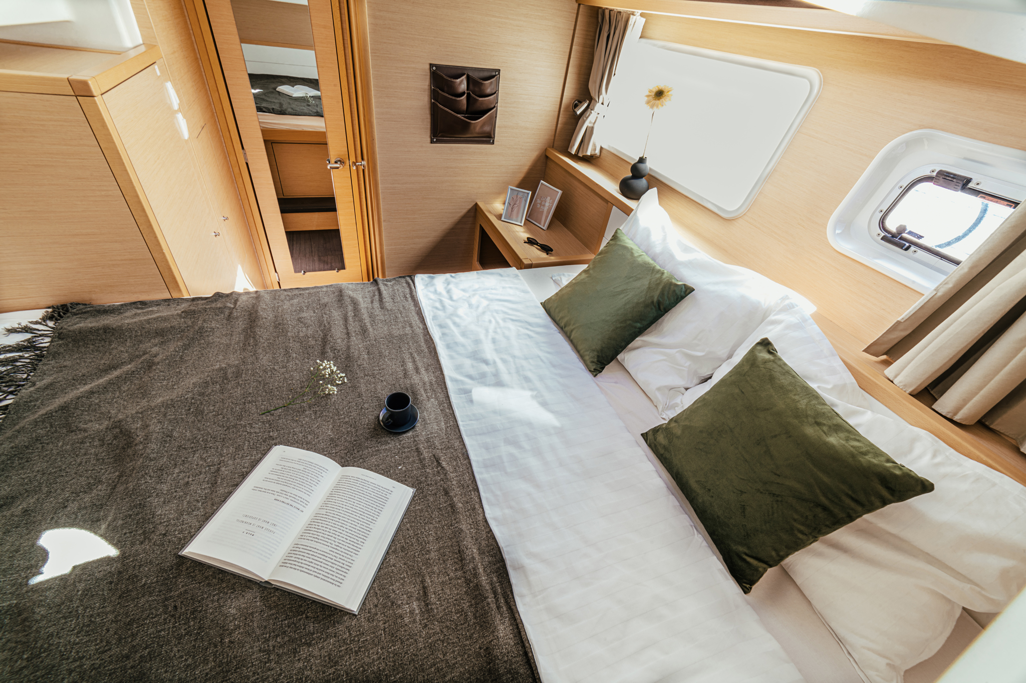 | Safety | AIS Empfänger, Autopilot, Bordapotheke, Feststoffschwimmwesten, Feuerlöscher, Notpinne, Notsignale, Rettungsinsel, Sicherheitsausrüstung, Sicherheitsgurt, Taschenlampe, UKW-Funk |