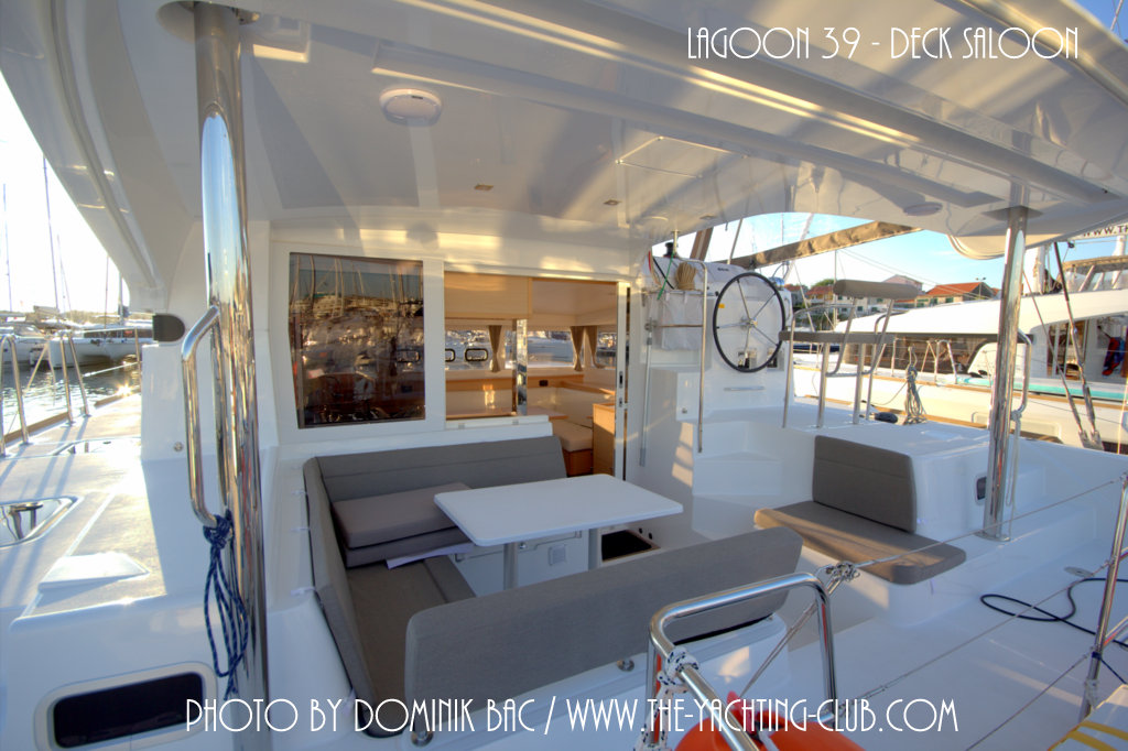 | Outside | 12 V-Anschluss, 220 V-Landanschluss, Anker mit Kette, Bootshaken, Cockpitlautsprecher, Cockpitpolster, Cockpittisch, Deckbürste, Dieselkanister , elektr. Ankerwinsch, Fender, Festmacherleinen, Gangway, Kunststoff-Eimer (Pütz), Solaranlage, Wasserschlauch, Winschen |