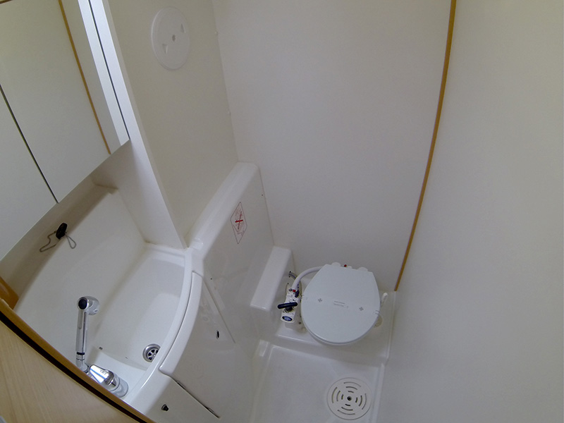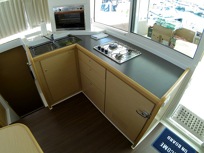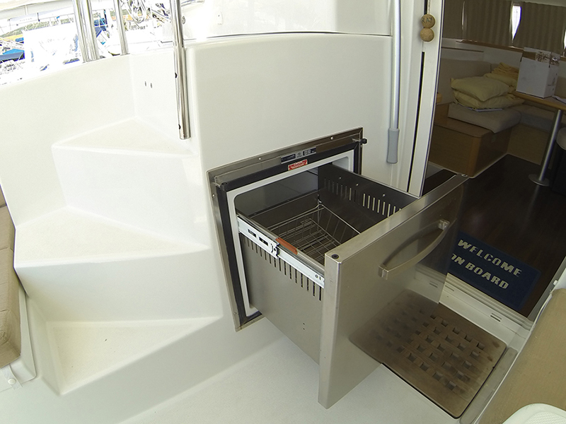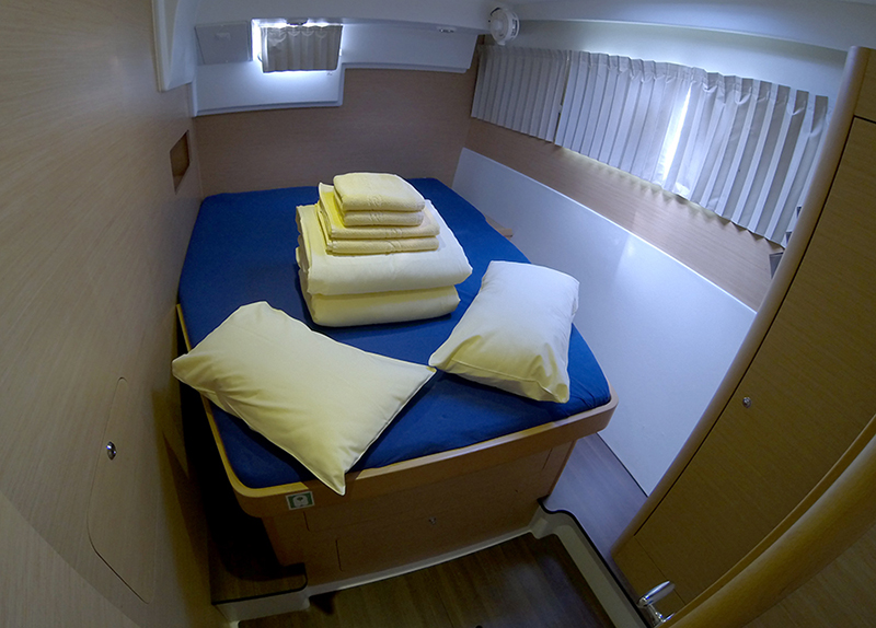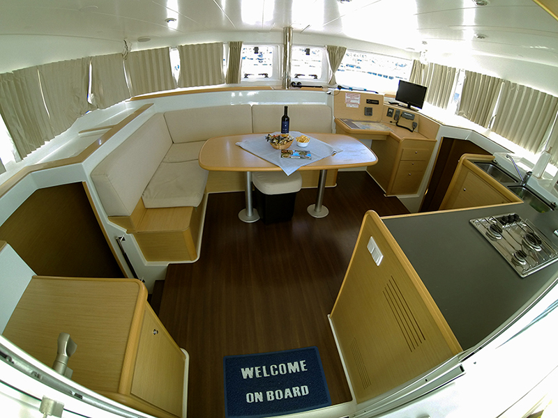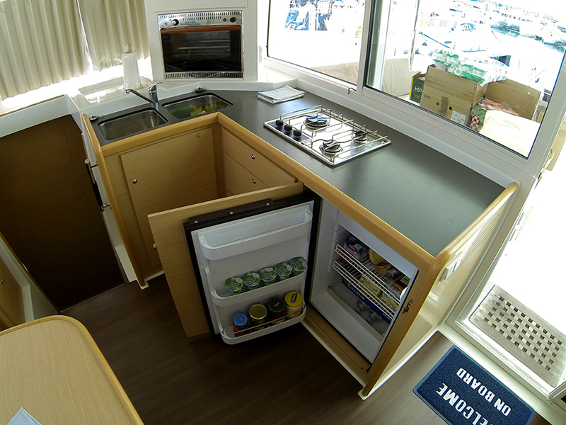 | Inside | Fäkalientank, Kühlschrank, Luftpumpe für Beiboot, Radio mit CD, AUX und USB, TV + DVD, Ventilatoren in Salon und Kabinen, Warmwasser, WC (elektr.) |