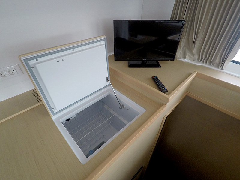 | Inside | DVD-Player, Fäkalientank, Generator, Heizung, Klimaanlage (ohne Landstrombedarf), Kühlschrank mit Gefrierfach, Luftpumpe für Beiboot, Radio mit CD/MP3/USB, TV, Warmwasser |