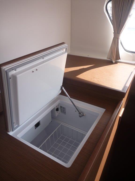 | Inside | Borduhr, Dusche, Eisbox, Generator, Heizung, Inverter 12V/220V, Klimaanlage (ohne Landstrombedarf), Kühlschrank, Ladegerät, Pantryausstattung, Radio mit CD/MP3/USB/AUX-In, Salontisch absenkbar, Ventilatoren in Kabinen, Warmwasser, WC (elektr.) |