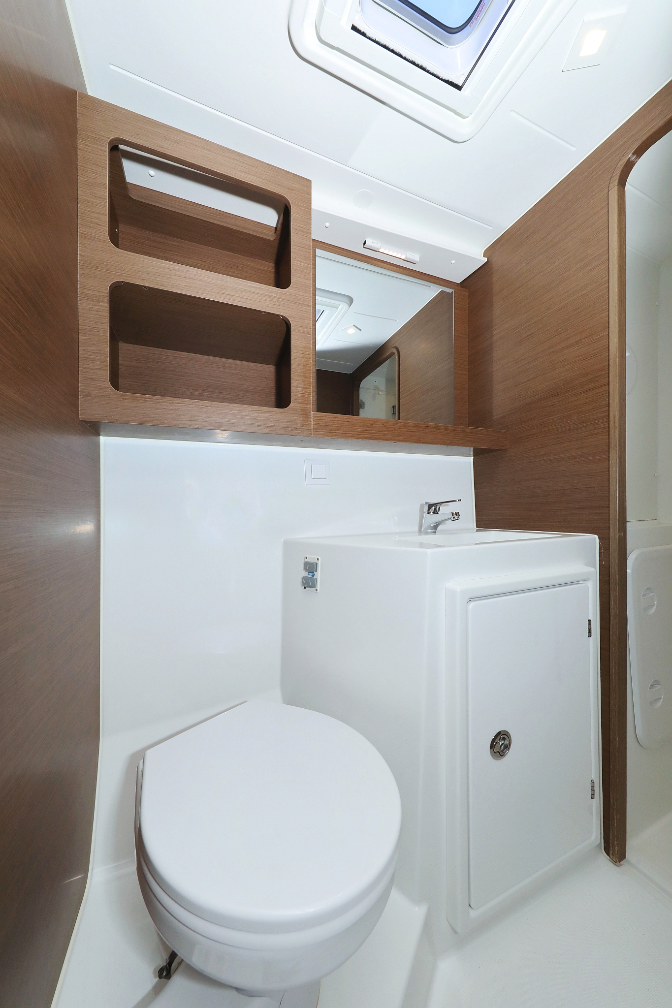 Inside 2. Kühlschrank, 220V Steckdosen, Backofen, Borduhr, Fäkalientank, FUSION Sound System, Gasherd, Generator, Heizung, Klimaanlage (ohne Landstrombedarf), Kühlschrank, Ladegerät, Mokkakanne, Pantryausstattung, Spülbecken, Warmwasser, Wasserkocher, WC (elektr.)