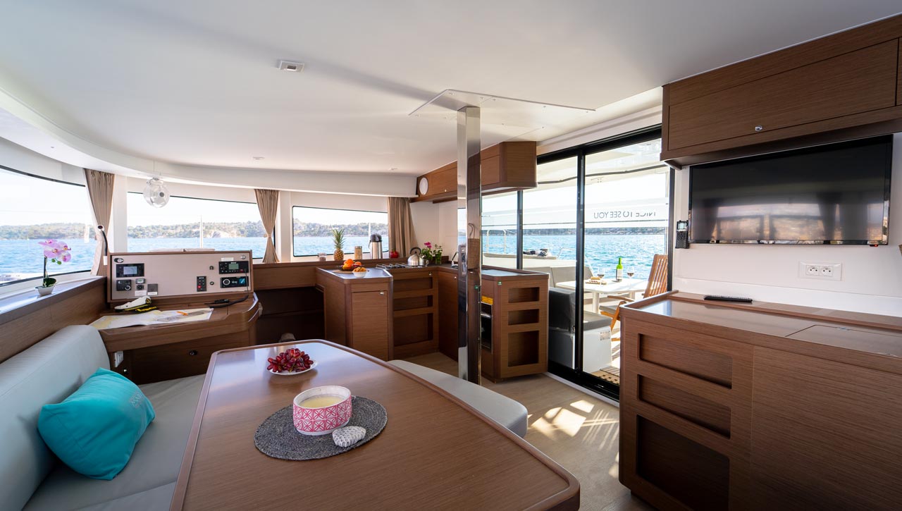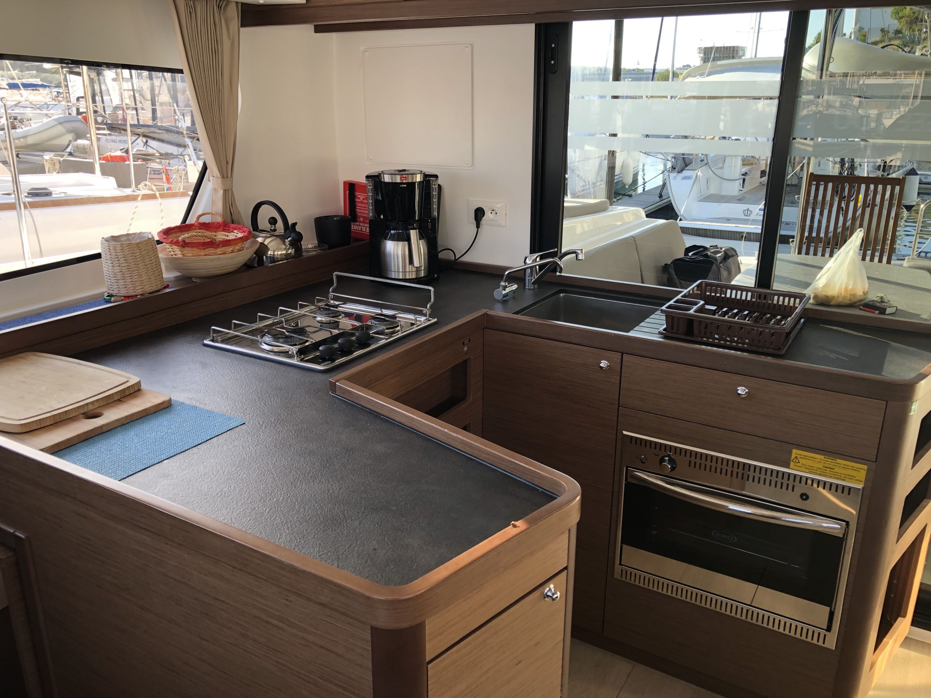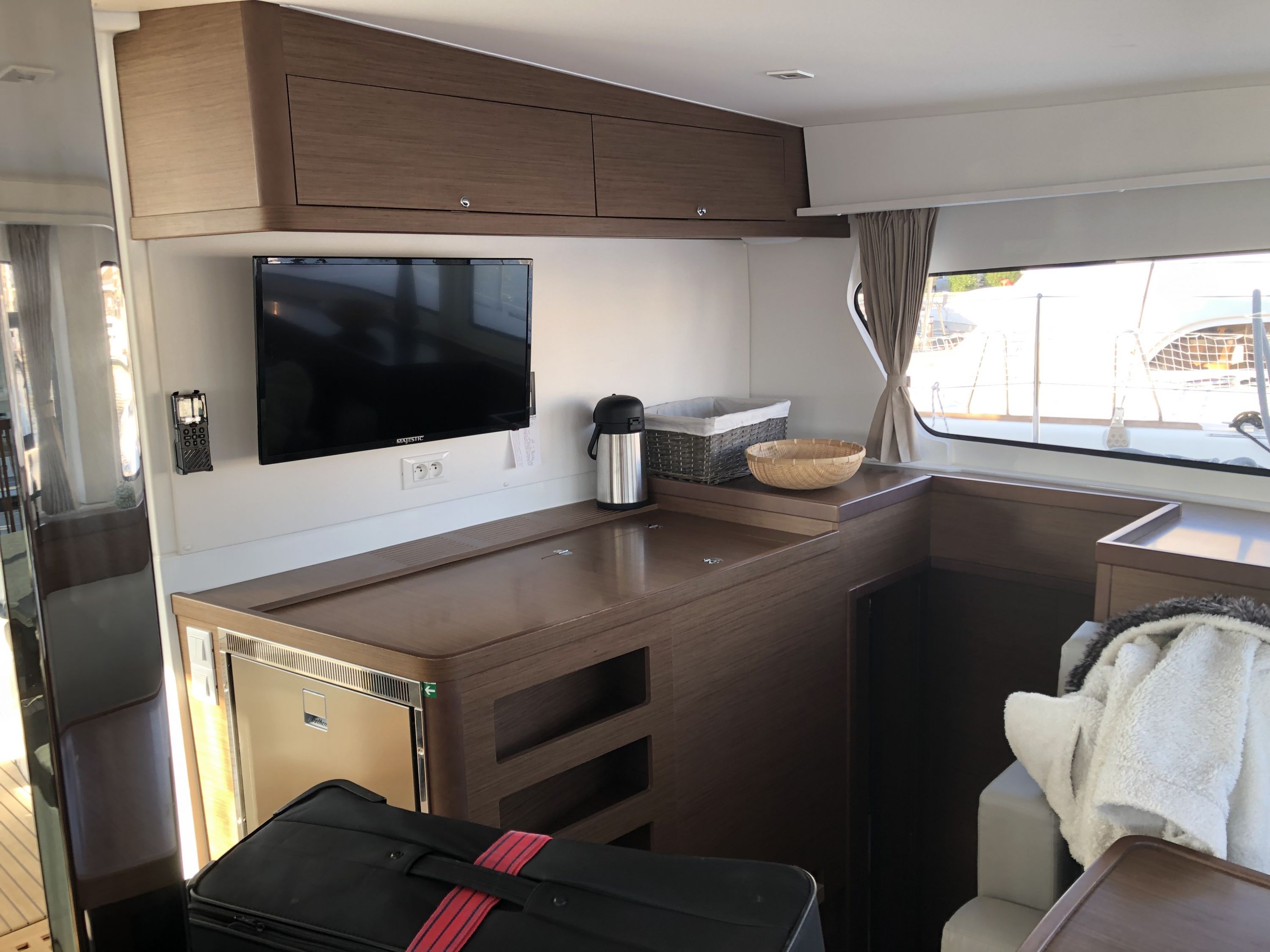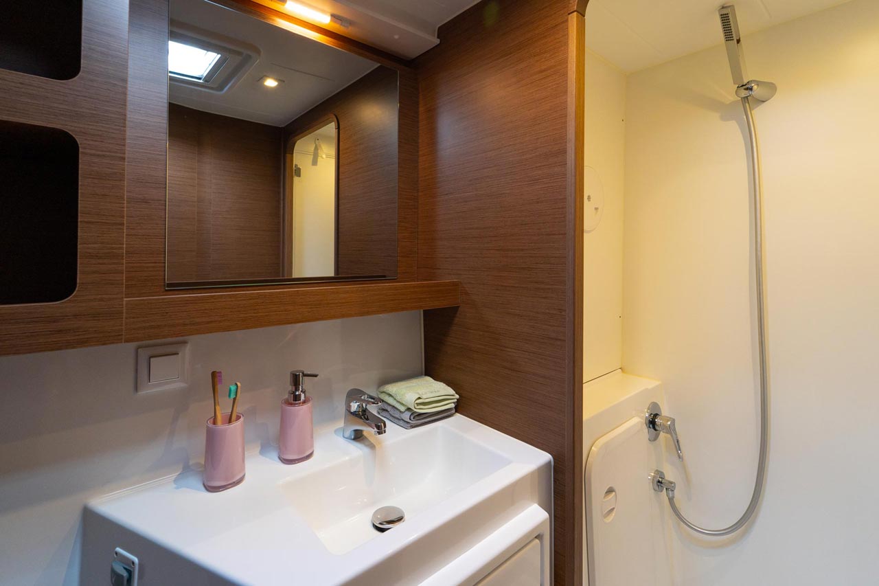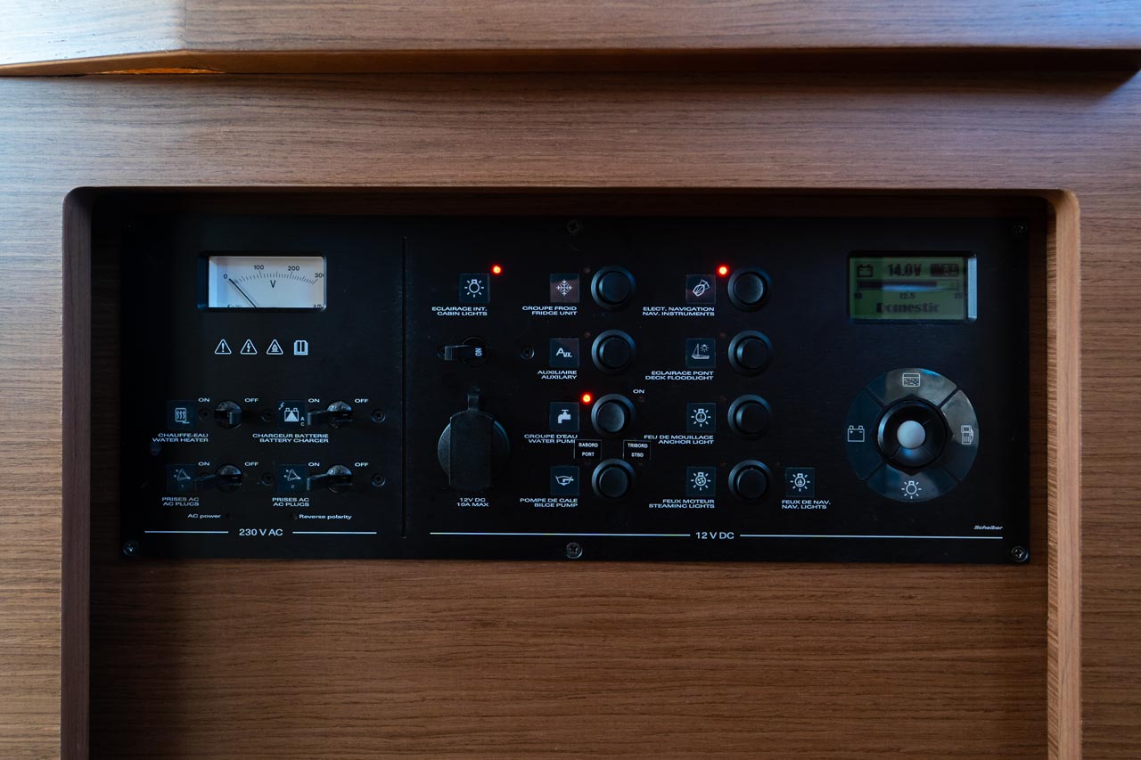 | Inside | Borduhr, Heizung, Inverter 12V/220V, Kühlschrank, Ladegerät, Luftpumpe für Beiboot, Pantryausstattung, Radio mit CD/MP3/USB/AUX-In, Salontisch absenkbar, USB Steckdose, Ventilatoren in Kabinen, Warmwasser, WC (elektr.) |