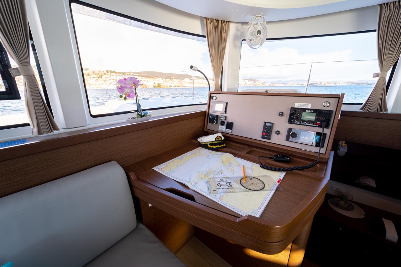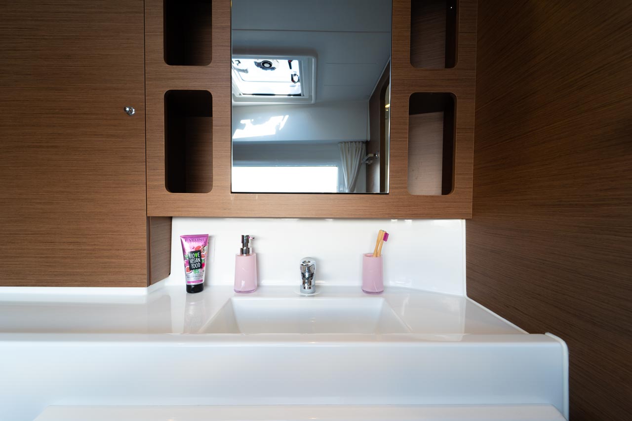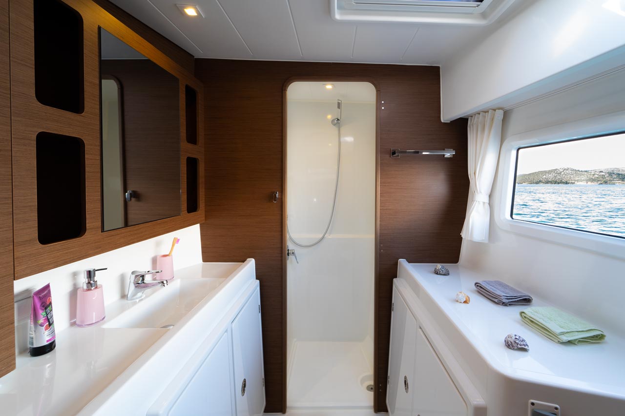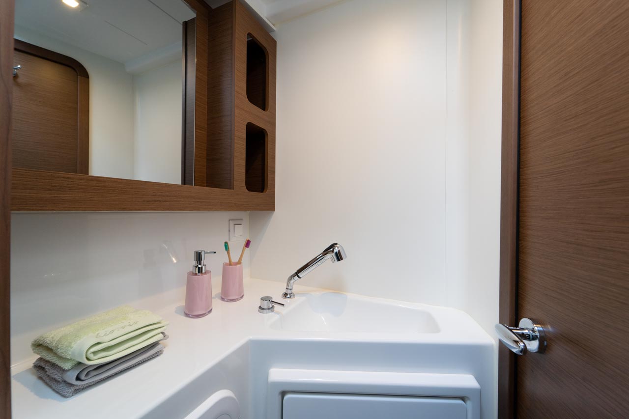 | Inside | Borduhr, Heizung, Inverter 12V/220V, Kühlschrank, Ladegerät, Luftpumpe für Beiboot, Pantryausstattung, Radio mit CD/MP3/USB/AUX-In, Salontisch absenkbar, USB Steckdose, Ventilatoren in Kabinen, Warmwasser, WC (elektr.) |